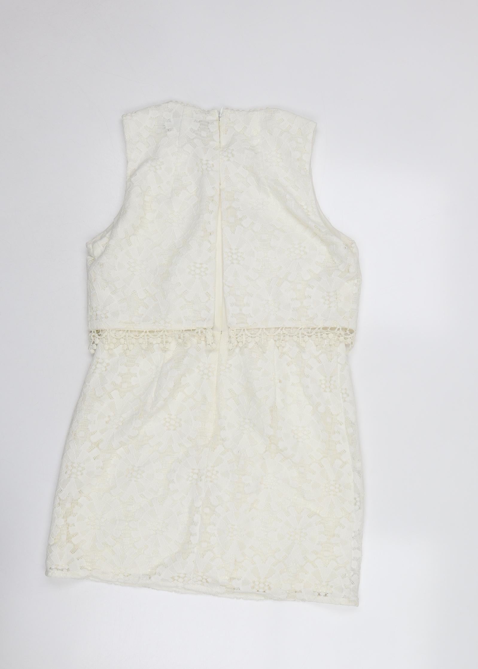 Womens Ivory Polyester Mini Size 12 Round Neck Zip - Crocheted Lace Detail