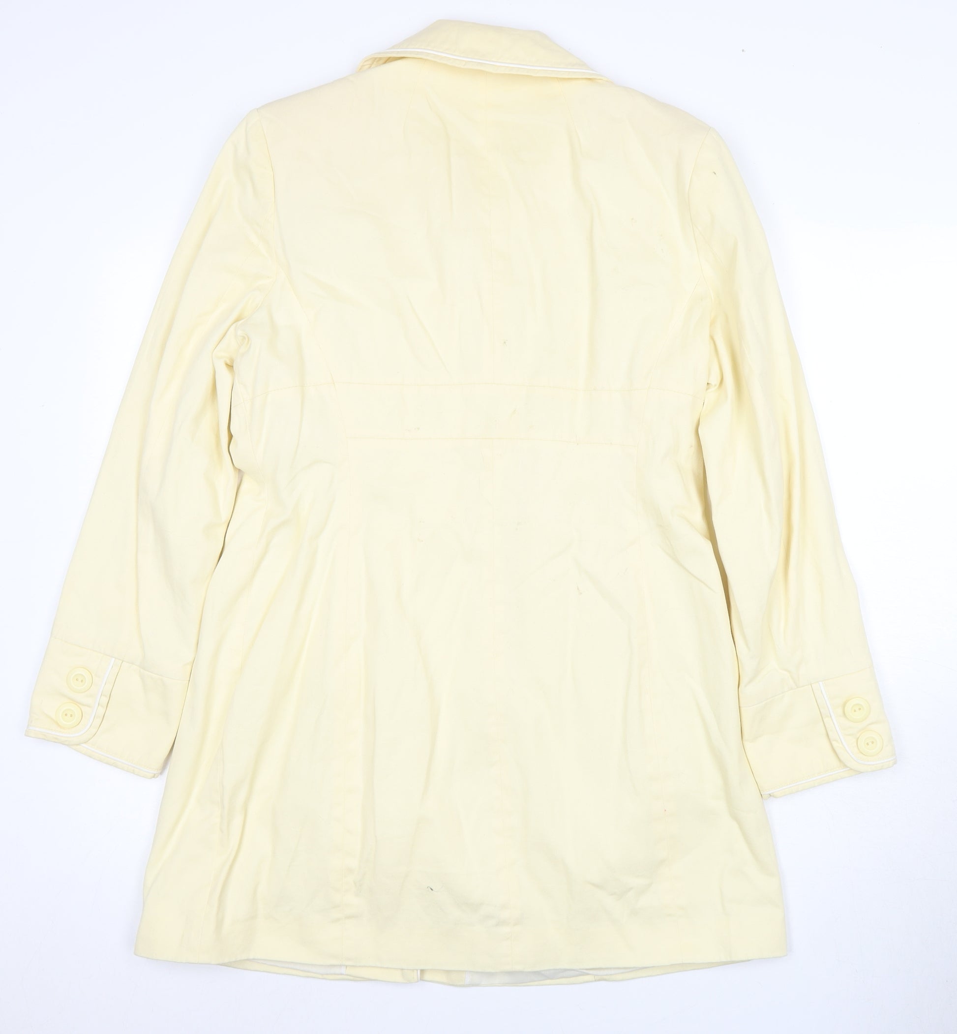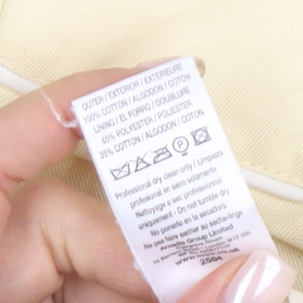 Explore the timeless elegance of this Topshop Trench Coat, designed to offer both style and comfort in a sleek ivory shade. Tailored for the modern woman, this coat exemplifies classic sophistication with its trench coat style, perfect for both formal and casual occasions. Crafted from high-quality cotton, it provides a soft yet sturdy feel, ideal for spring and autumn. The collared feature and button accents add a touch of class, ensuring you step out in style. This coat is lined with a blend of polyester and cotton, promoting both durability and comfort, while maintaining a mid-length fit that flatters a regular silhouette. Its versatile design allows it to be paired effortlessly with a range of outfits. Despite slight wrinkling, the condition remains very good, with no noticeable defects. The coat is appropriate for any wardrobe, offering a chic outerwear solution that promises longevity. Embrace the practicality and style of Topshop with this ivory trench coat, an essential piece that seamlessly complements your ensemble, ensuring you look polished and sophisticated, no matter the occasion.