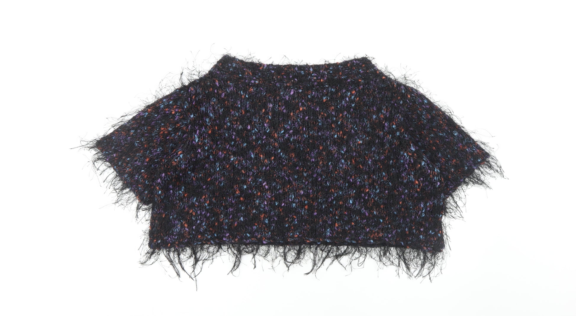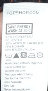 This stylish Topshop cropped blouse is a perfect addition to your wardrobe for the colder months. Featuring a multicoloured pattern and a regular fit, it is designed for women looking for both comfort and style. The knit fabric type ensures warmth and a soft touch, while the blend of polyester, acrylic, mohair, and nylon provides durability and a unique texture. Ideal for casual occasions, this blouse pairs well with high-waisted jeans or a skirt, making it versatile for various outfits. The classic/fitted sleeve style adds a touch of sophistication, while the regular size type ensures a flattering fit. Machine washable for easy care, this blouse is in excellent condition, showing no signs of wear. A must-have piece for the autumn and winter seasons.