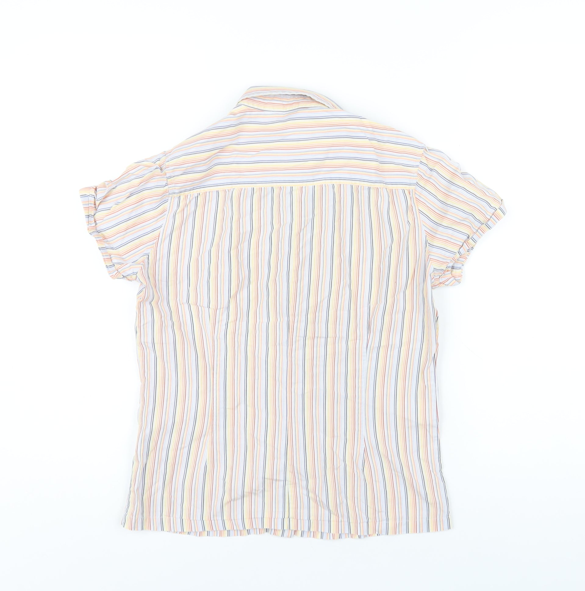 Womens Multicoloured Striped Cotton Basic Button-Up Size 10 Collared