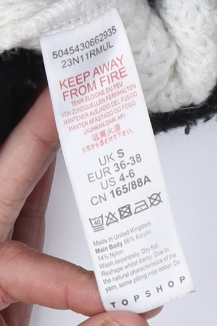 Elevate your casual wardrobe with this chic Topshop women's jumper, perfect for autumn and winter wear. Crafted with a relaxed fit, this pullover style features a cosy crew neck and long sleeves, making it ideal for keeping you warm and stylish. The jumper showcases a multicoloured striped pattern in a chunky-knit style, adding a touch of modern flair to your outfit.Constructed from a blend of acrylic and nylon, the fabric offers both comfort and durability, ensuring a long-lasting addition to your wardrobe. This regular size jumper in a women's department is machine washable, making it easy to care for. Despite a slight pilling and a small mark, it remains in very good condition, ready to enhance your collection.Pair it with your favourite jeans or leggings for a relaxed, yet fashionable look that suits both casual and semi-formal occasions. Whether you're heading out for a casual meet-up or simply enjoying a comfortable day at home, this jumper is an excellent choice to keep you stylishly snug. Don't miss out on this versatile piece that effortlessly combines classic design with contemporary flair.