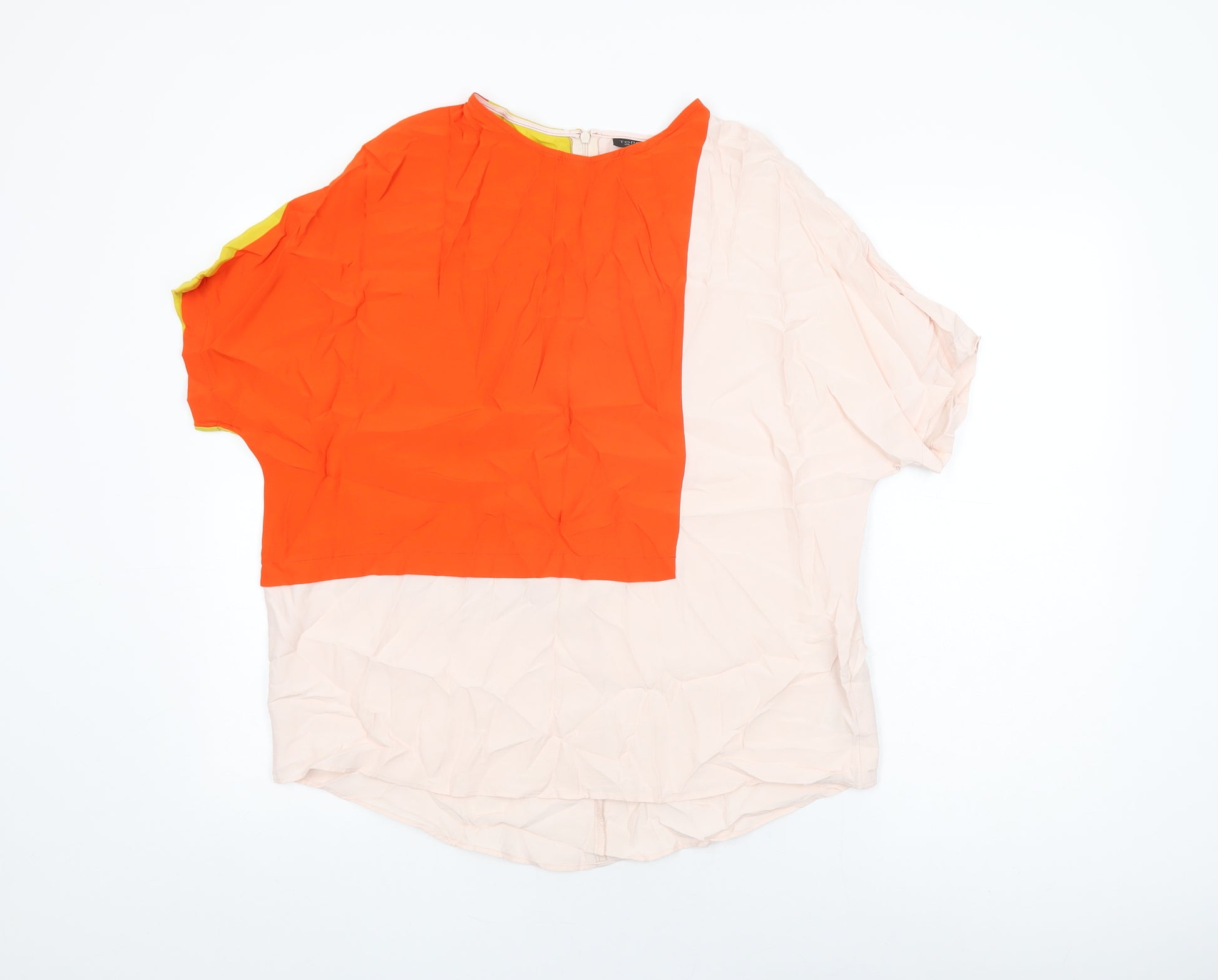 Womens Pink Geometric Viscose Basic Blouse Size 10 Round Neck