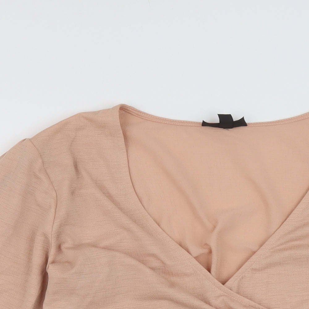 Womens Pink Polyester Basic Blouse Size 12 V-Neck