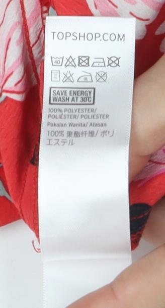 Add a vibrant splash of floral charm to your wardrobe with this Topshop Women's Red Floral Cropped Blouse. Perfect for the lively spring and summer seasons, this blouse showcases eye-catching floral patterns in vivid red tones that create a standout look for any casual or party atmosphere. Designed with short, flared sleeves and a flattering V-neckline, this blouse presents a youthful and refreshing appearance. Crafted from lightweight polyester, it's beautifully soft against the skin and ideal for keeping cool and comfortable during warm weather occasions. The cropped style with a tie front accentuates a relaxed fit, ensuring you feel and look great. Whether paired with high-waisted jeans for a casual day out or a sleek skirt for an evening soirée, this versatile blouse fits seamlessly into a variety of ensembles. With its new and pristine condition, where original sales tags are still attached, this blouse promises quality and style. Embrace the playful yet elegant vibe of this Topshop find, offering both durability and charm in one chic package. Machine washable for easy care, it's a wardrobe staple ready for endless outfit possibilities.