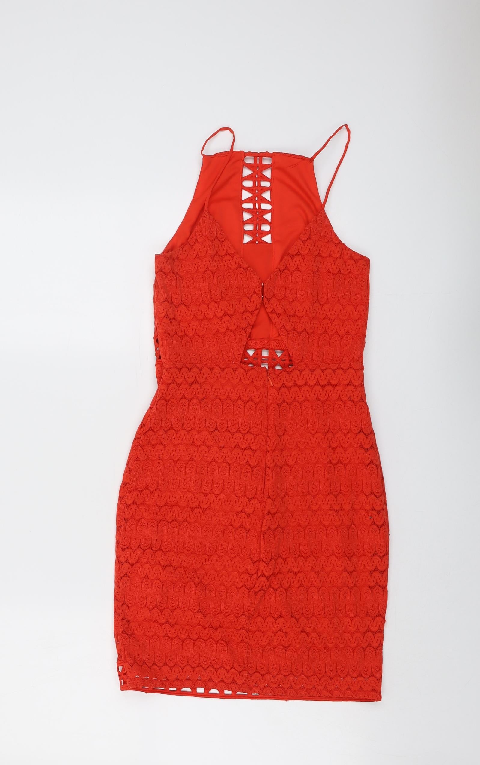 Womens Red Nylon Bodycon Size 6 Square Neck Zip
