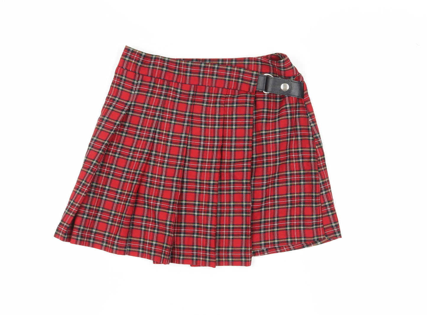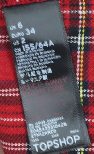 Step up your wardrobe with this classic red plaid skirt from Topshop, a quintessential addition to any fashion-forward collection. Perfectly tailored for women, this short pleated skirt exudes a retro vibe, making it an ideal choice for casual day-outs or get-togethers. Designed in a size 6, it flatters a variety of body shapes and seamlessly fits within your autumn and winter wardrobe. The skirt's polyester and viscose blend ensures a comfortable and durable wear, while the machine-washable fabric allows for easy care and maintenance. The buckle accent adds a touch of elegance, enhancing its already stylish plaid pattern. Whether paired with boots or sneakers, this versatile piece will bring an effortlessly chic look to your ensemble. Don't miss the chance to own a piece that combines style, comfort, and practicality. Get ready to turn heads and embrace every moment with confidence in this fabulous Topshop skirt.