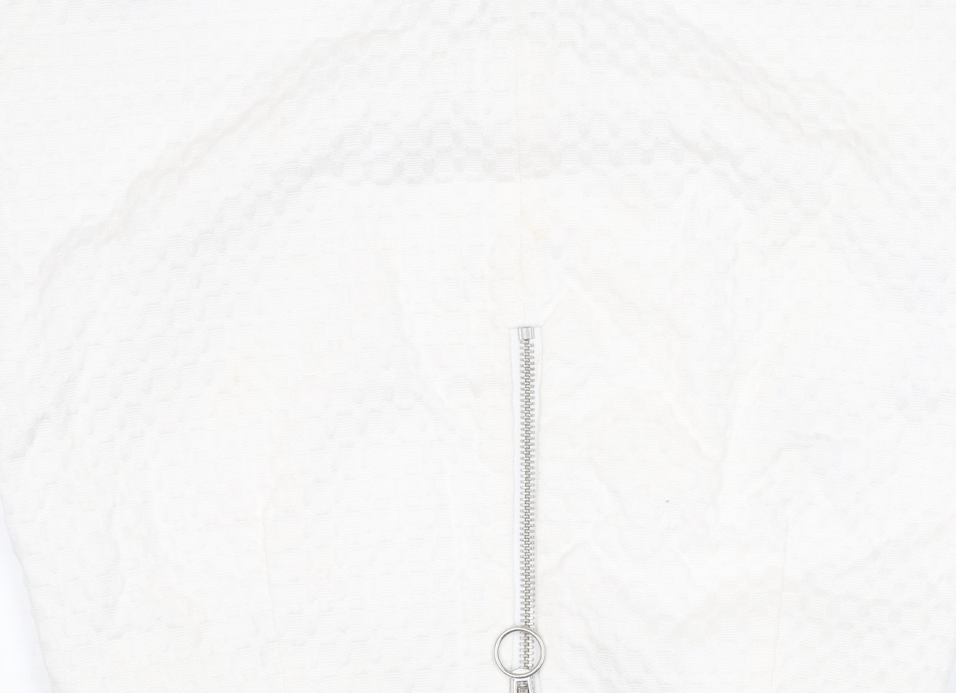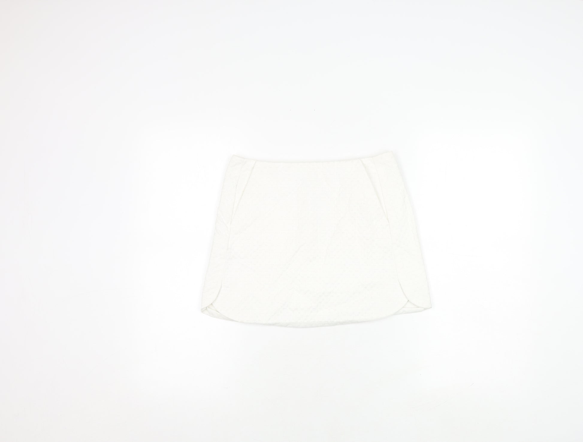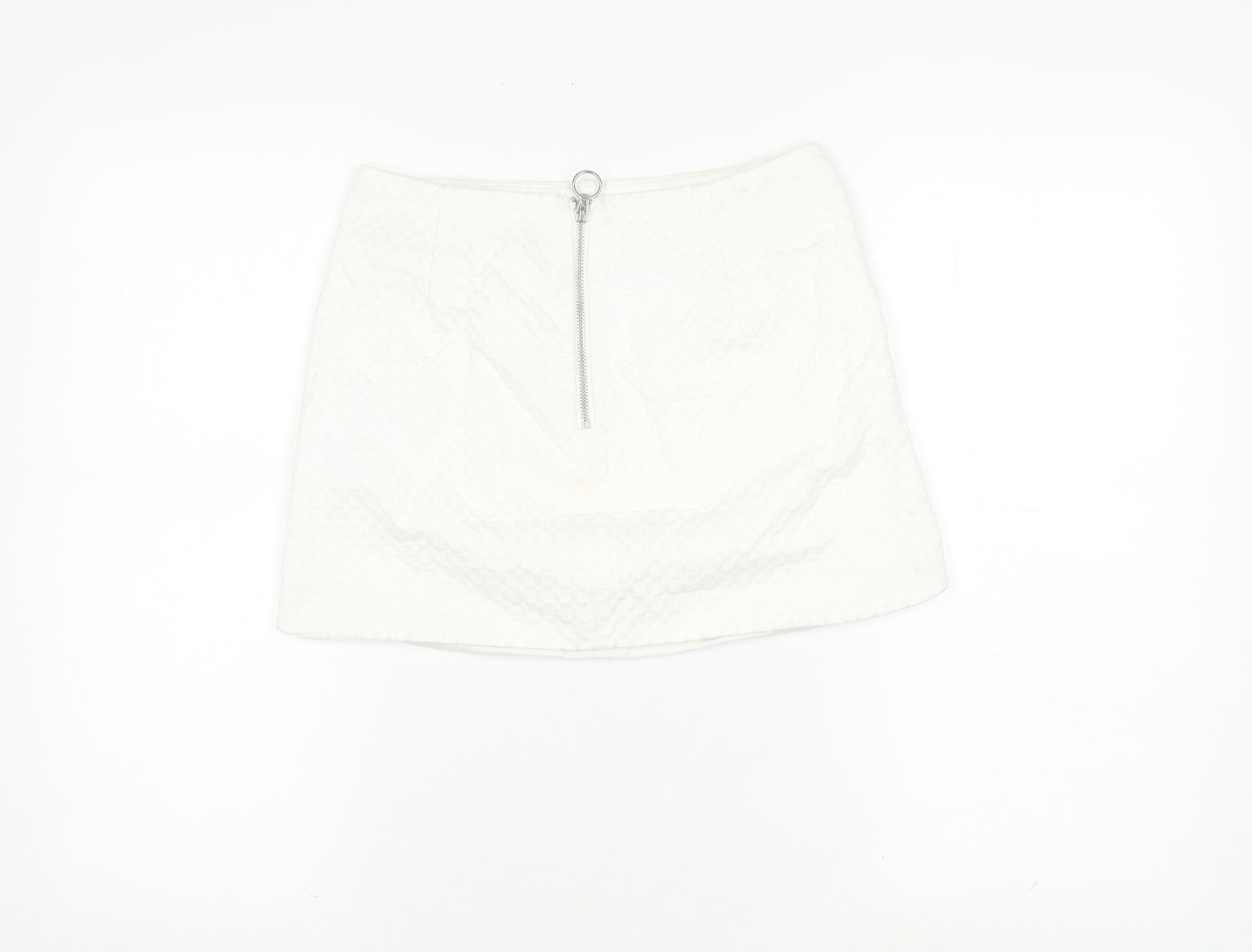 Step out in style with this chic Topshop White Mini Skirt, perfect for adding a dash of elegance to your wardrobe. Made for the fashion-forward woman, this skirt seamlessly combines comfort and style with its 70% cotton and 30% polyester blend, offering a soft feel and a durable wear. The striking white colour brings a fresh and modern vibe, complementing any ensemble effortlessly.Ideal for casual outings or a night out on the town, this skirt features a bold zip accent at the front, adding a touch of modern flair and making it easy to style with a variety of tops and jackets. The mini length is perfect for showing off your legs, making it a fantastic choice for all-season fashion.Crafted with meticulous detail, this skirt ensures all-day comfort, and its machine washable nature means easy maintenance, making it a practical addition to any collection. Its simple yet elegant design makes it versatile enough to dress up or down—pair it with a statement blouse and heels for a sophisticated look, or keep it casual with a tee and sneakers.Whether you're heading to a festive soirée or a relaxed brunch, this Topshop skirt will serve as your trusty style companion. With minimal wear and still in excellent condition, this piece is a must-have for those who appreciate quality fashion at an affordable price. Secure it today and enjoy the versatility and elegance it brings to your wardrobe.
