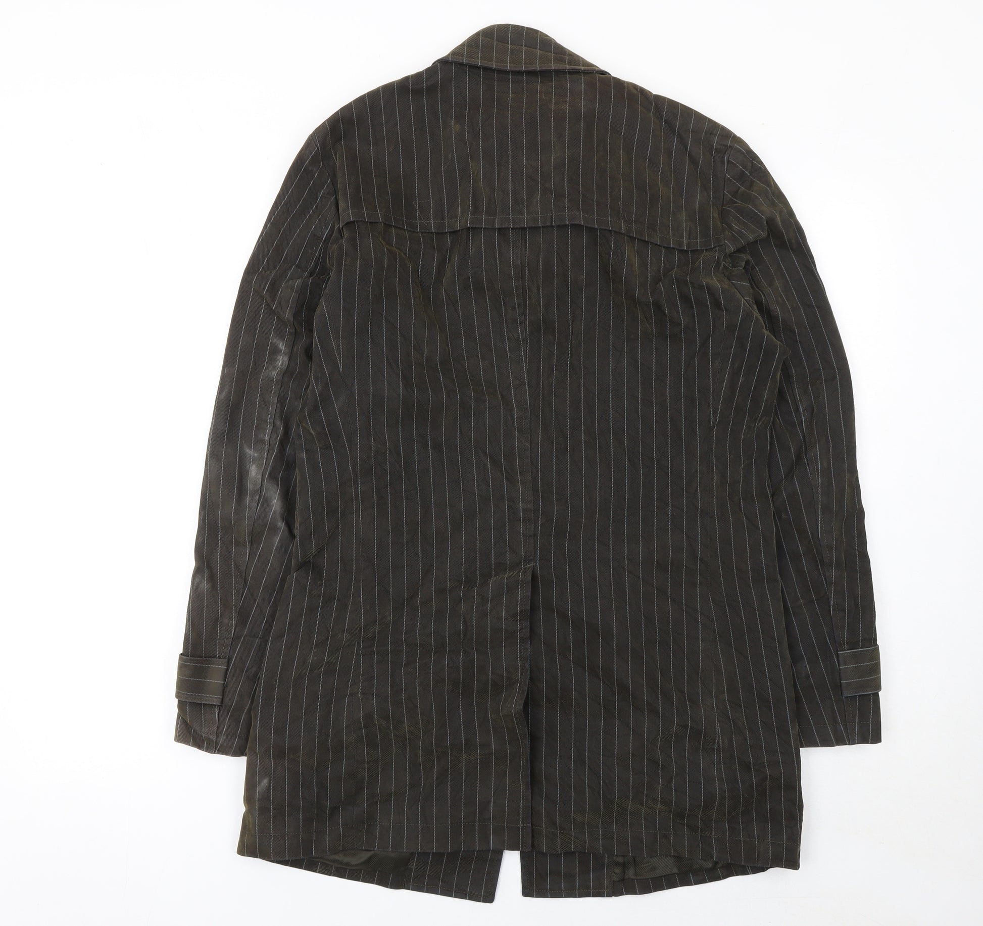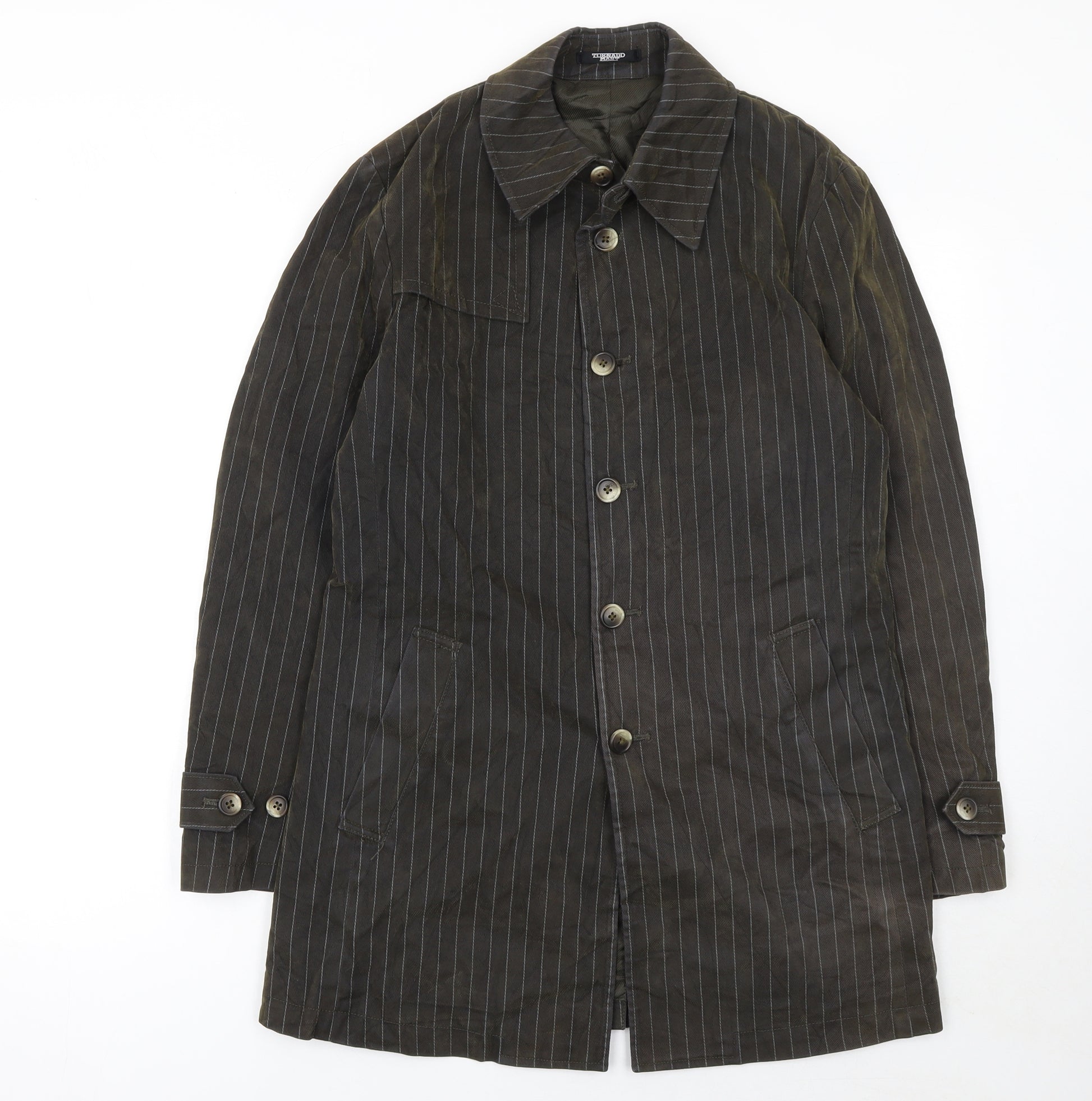 Men's Brown Pinstripe Cotton Mid-Length Overcoat M