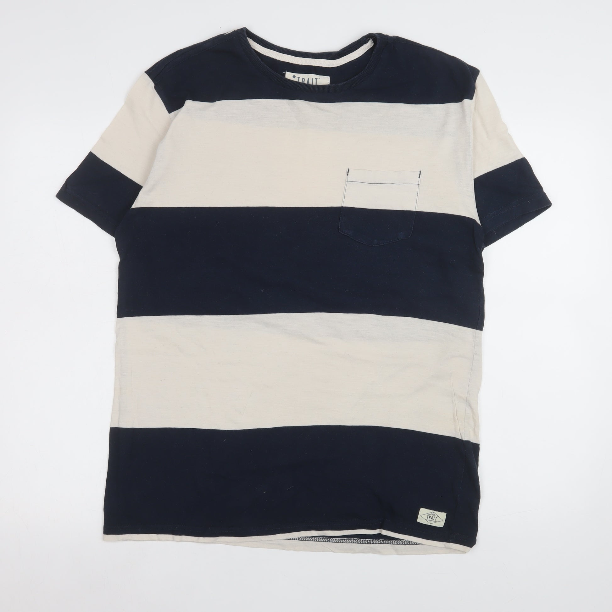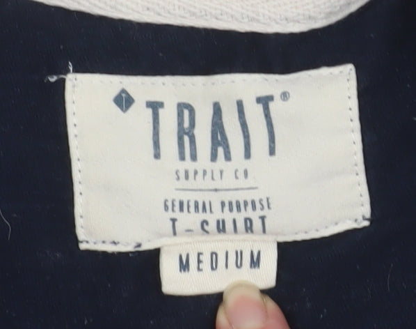 Refresh your everyday wardrobe with this classic men’s striped T-shirt by Trait Supply Co. Designed in a timeless navy and beige colourway, this short-sleeve tee offers effortless style that’s perfect for layering or wearing on its own in warmer months. Crafted from 100% soft cotton jersey, it provides breathable comfort and all-day wearability, ideal for casual outings, weekends or relaxed afternoons. The crew neckline and regular fit lend a flattering yet easy-going look that suits most body shapes, while the bold horizontal stripes and small front chest pocket add a touch of laid-back detail. The high-quality cotton fabric ensures durability wash after wash and feels soft against the skin. This versatile T-shirt embodies a simple, everyday aesthetic with a modern twist, making it easy to pair with jeans, chinos or shorts for a fresh, stylish outfit. Perfect for spring, summer and autumn wear, its lightweight construction keeps you cool while maintaining a comfortable, relaxed fit. In very good used condition with only mild signs of wear and slight fading, this Trait Supply Co piece remains a great addition to any casual menswear collection. With reliable craftsmanship and a subtle stitched logo accent, it captures that effortlessly modern yet classic style Trait is known for. Whether you’re heading out for a weekend stroll, meeting friends, or relaxing at home, this T-shirt offers a dependable balance of quality, comfort and style. Add this Trait Supply Co striped tee to your collection for an easy, go-to option that’s simple, practical and fashionably understated.