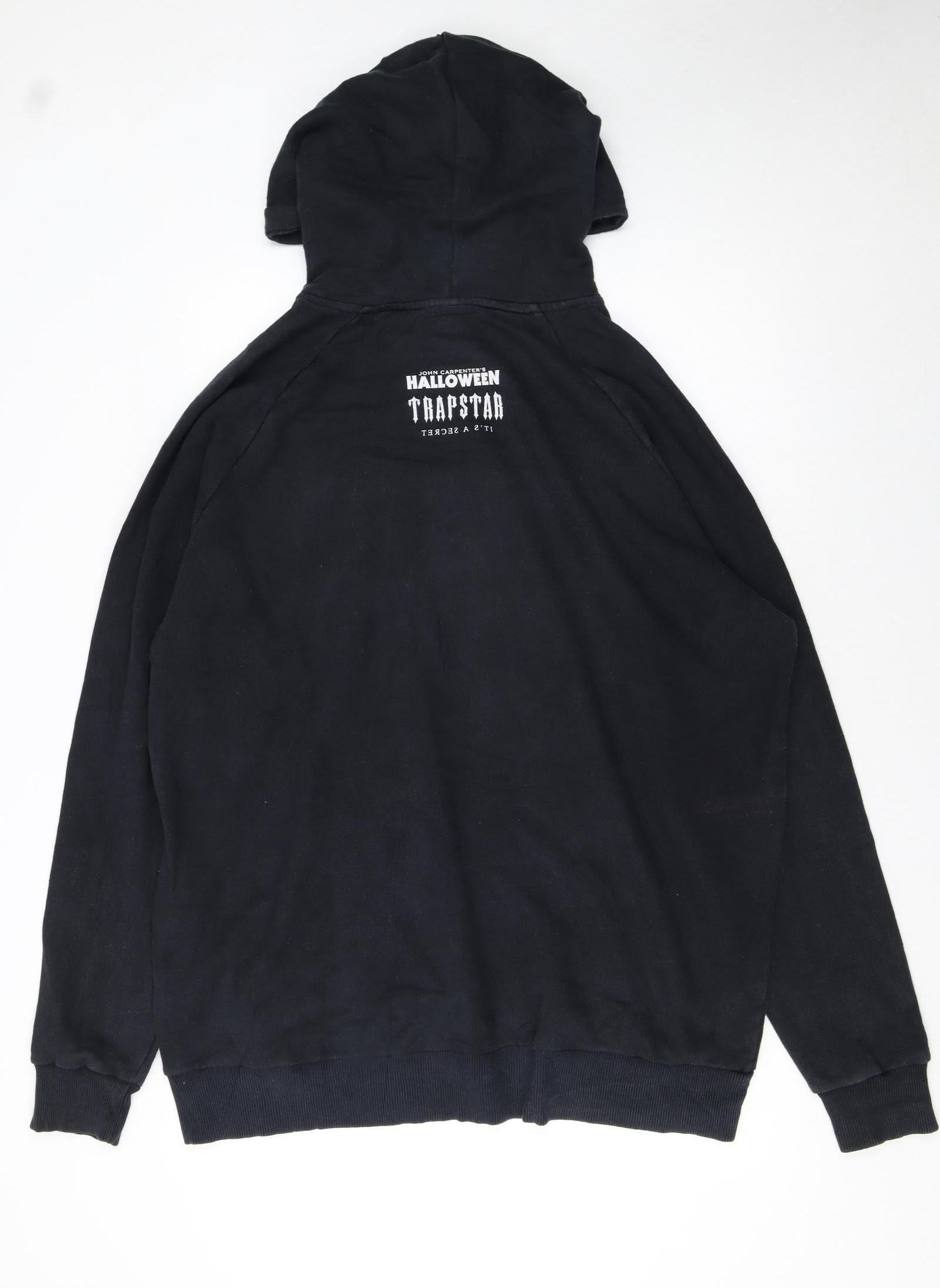 Step into streetwear style with this Trapstar men’s pullover hoodie, featuring a bold Halloween-themed graphic print. Crafted from a soft, breathable cotton-blend fleece, this high-quality hoodie promises lasting comfort and warmth through autumn and winter. The striking black design is elevated with iconic Trapstar branding and a signature ‘It’s a Secret’ logo on the chest and back, capturing the London brand’s distinctive edge. The front showcases a vivid, horror-inspired Halloween print that brings unique character to your casual wardrobe. Designed in a relaxed regular fit with a classic crew neck and long sleeves, it provides a comfortable and laidback silhouette ideal for layering. The hood and ribbed cuffs enhance the fit, while the kangaroo-style pouch pocket delivers functional comfort. The 80% cotton and 20% polyester fabric ensures durability and an ultra-soft touch, perfect for everyday wear or standout streetwear looks. This hoodie is machine washable for easy care. Though gently worn with light signs of use, it remains in very good condition with only minor fading, maintaining its bold aesthetic appeal. Ideal for fans of urban fashion or collectors of limited collaborations, this Trapstar Halloween hoodie merges contemporary street culture with iconic horror influences. Pair it effortlessly with jeans, cargos, or joggers for an edgy, comfortable outfit that works for casual days, walks around the city, or seasonal gatherings. A must-have addition for those who appreciate quality streetwear with a statement edge, this Trapstar hoodie embodies style, comfort, and originality in every detail.