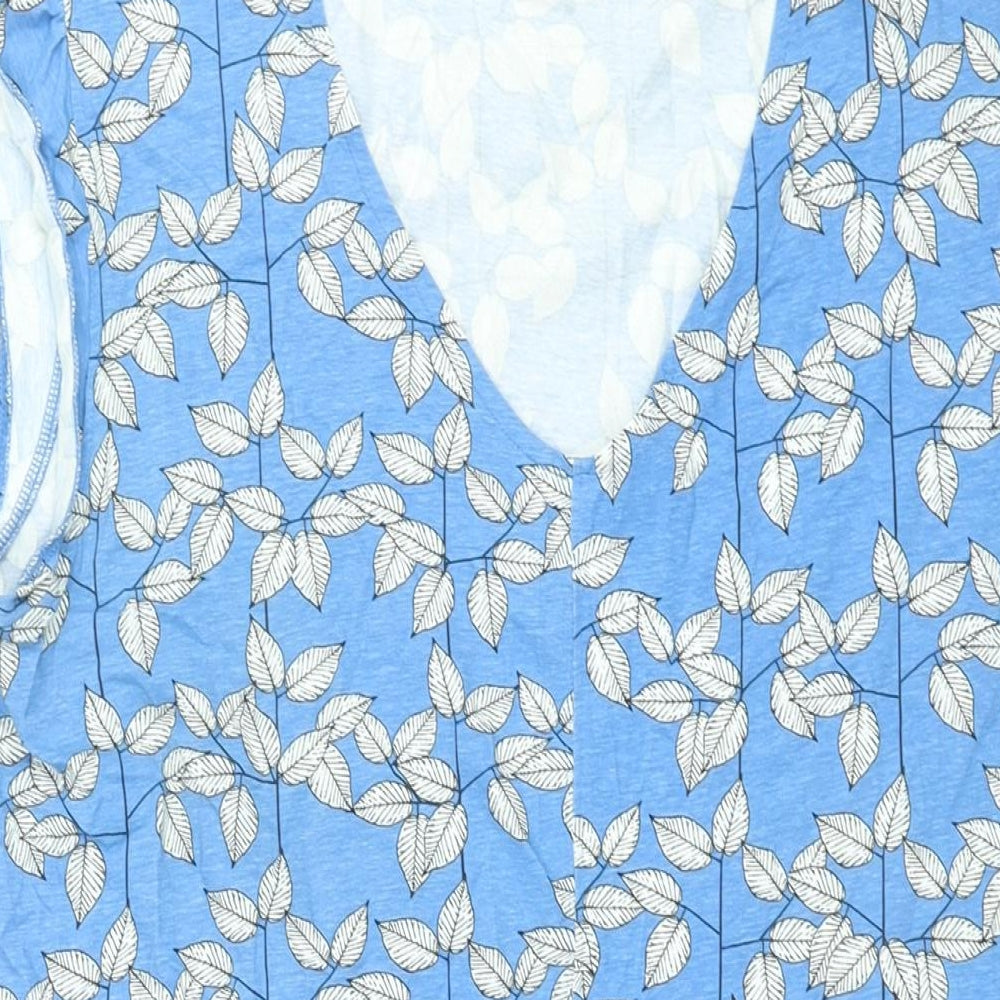 Womens Blue Geometric Cotton Shift Size L V-Neck Pullover - Belted
