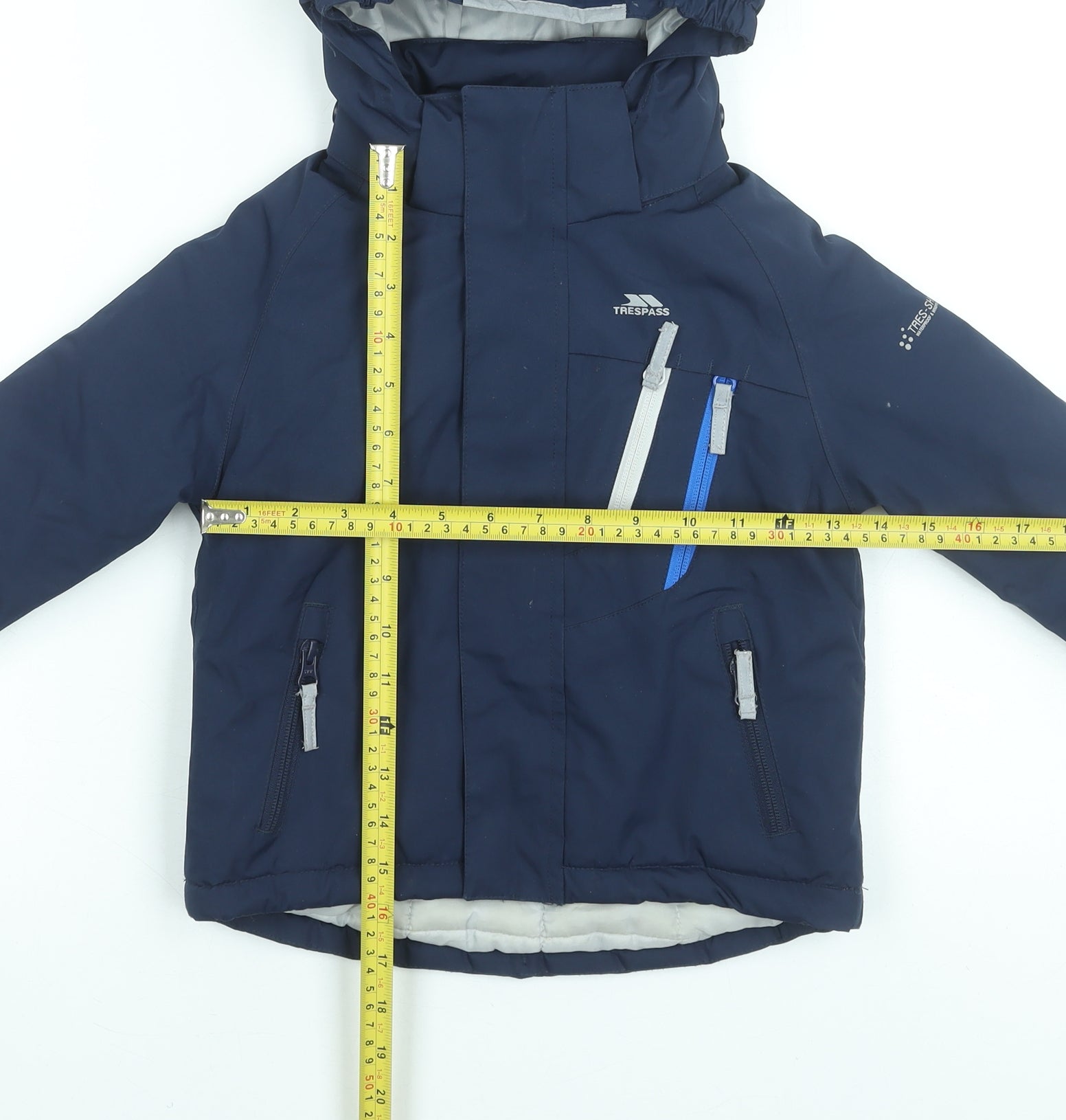 Keep your little adventurer cosy and protected in this Trespass Boys Blue Waterproof Hooded Puffer Jacket, perfect for cold and rainy days. Designed by Trespass, a trusted name in outdoor wear, this high-performance jacket ensures your child stays dry, warm, and comfortable in the toughest winter conditions. Crafted from durable polyester with a PVC coating, it offers full waterproof protection rated at 3000mm, providing reliable resistance against the elements. The jacket’s windproof construction and taped seams add an extra barrier against chill, while the soft polyester lining ensures lasting comfort for active days outdoors. Ideal for boys aged 2-3 years, this navy blue jacket features a sleek modern design with eye-catching zip accents in contrast colours, offering both function and style. The practical full-zip front, with secure zipped pockets and adjustable cuffs, ensures that essentials remain safely stored while keeping snug against the cold. A detachable hood and elasticated hem provide adaptable coverage, making it suitable for everything from school commutes to woodland walks and winter holidays. The breathable yet insulated construction of this Trespass jacket makes it perfect for winter and autumn wear, while the machine-washable fabric allows for convenient care — ideal for busy parents. Reflective details on the back increase visibility in low light, ensuring added safety for your little one during evening outings. Whether worn for skiing, hiking, or everyday adventures, this jacket delivers exceptional warmth and all-weather reliability. In excellent pre-owned condition with no noticeable defects, this quality piece remains built to withstand years of active use. Affordable and durable, it’s an essential outerwear choice for boys who love exploring the outdoors, whatever the weather. Make sure your child is ready to tackle cold mornings and rainy afternoons in style with the dependable Trespass Boys Blue Waterproof Hooded Puffer Jacket — a blend of comfort, protection, and practicality in one smart design.