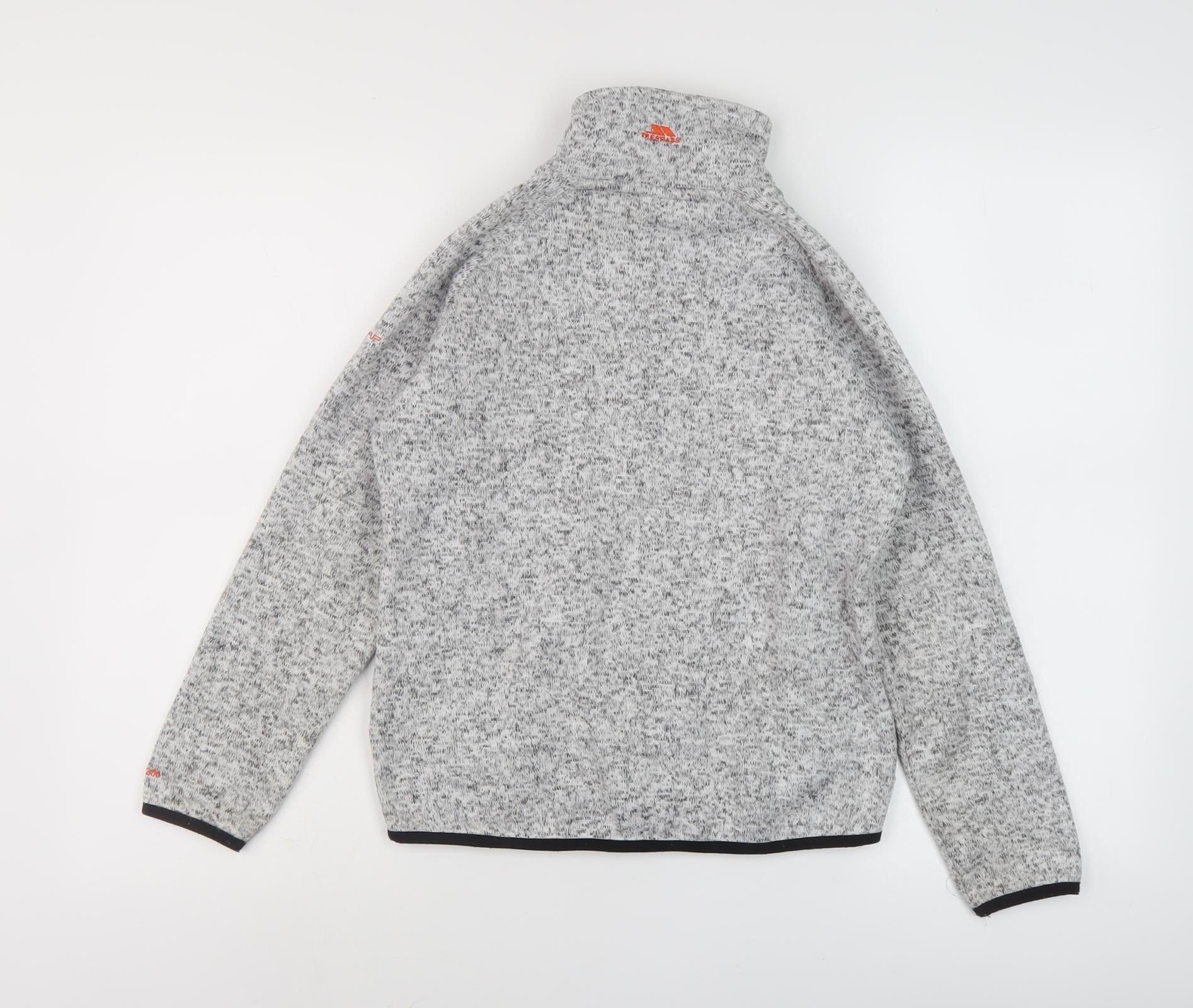Introducing the Trespass Boys Fleece-Lined Grey Jacket, crafted for both comfort and style in cooler weather. This stylish jacket features a flecked pattern, adding a modern touch to any outfit while maintaining practicality. Made from durable polyester, it is designed to withstand everyday wear and tear. Equipped with durable zipped pockets, it offers secure storage for small essentials on the go. The long sleeves and zip closure ensure a snug fit, making it an ideal choice for layering during chilly outings or casual activities. Whether it's a day out in the park or a casual family gathering, this jacket promises to keep your little one warm and comfortable. Elevate your child's wardrobe with this versatile and chic outerwear piece from Trespass.