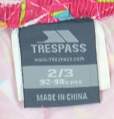 Add a splash of colour to your child's wardrobe with these vibrant Trespass shorts, perfect for any summer adventure. Crafted from breathable polyester, these shorts feature a stunning multicoloured geometric pattern, ideal for young fashionistas. Designed with a comfortable elastic waist and a regular fit, they ensure ease of wear and movement. These casual shorts are machine washable, offering convenience for busy parents. Perfect for playdates or family outings, they make a cheerful addition to any little girl's wardrobe. Great condition without any visible stains or damage, offering excellent quality at a bargain price. Encourage your little one’s unique style with these eye-catching shorts!