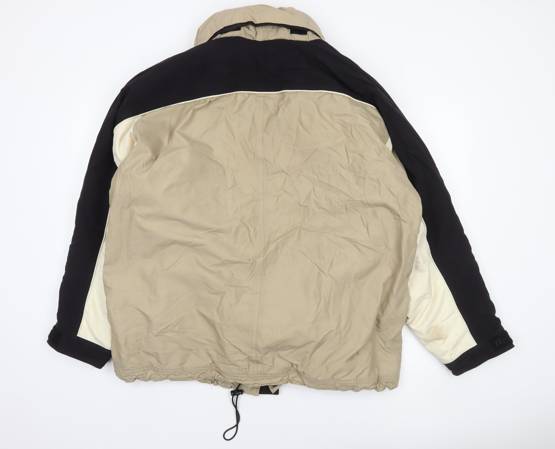 Stay warm and comfortable during winter adventures with this Trespass Men's Beige Waterproof Parka Jacket in size Large. Made from durable polyester, this jacket is designed for performance and protection, combining waterproof, windproof, and breathable technology to ensure you remain dry and shielded from the elements. Built with taped seams for added water resistance, the garment is ideal for hiking, skiing, or casual outdoor wear. The softshell material provides both flexibility and warmth while maintaining a stylish, practical look suitable for versatile use. It features a full zip fastening with button overlay for secure closure, a high stand-up collar for additional neck protection, and a hood for added weather defence. Multiple zipped and buttoned pockets make carrying essentials easy, whether you're on the slopes or in town. The light beige tone with contrasting black detail gives this jacket a classic, outdoor aesthetic that pairs well with a wide range of outfits. The regular fit ensures comfort and easy layering, while the mid-length cut provides balanced coverage against wind and rain. Perfect for casual wear, travel, or outdoor sports, this Trespass jacket offers a dependable solution for cold-weather comfort. In very good pre-owned condition with minor marks on the sleeve, it still retains its full function and appeal. Machine washable and built for regular wear, it’s a must-have outerwear piece for tackling unpredictable weather with confidence. Ideal for winter and outdoor adventures, this jacket offers performance, practicality, and enduring casual style at an excellent value. Perfect for the modern man seeking function and comfort in one reliable piece.