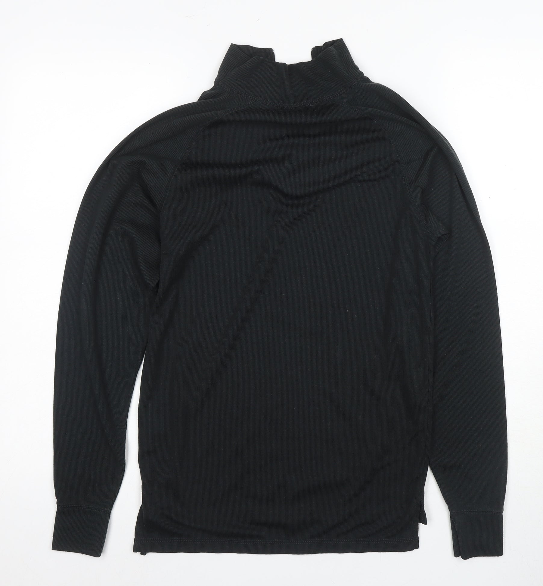 This Trespass black pullover in size XS is the perfect addition to any winter wardrobe. Designed for unisex adults, it promises both comfort and style. Crafted with a high neck and long raglan sleeves, it provides a warm and snug fit ideal for colder months. The solid black colour adds a versatile, timeless touch that can easily complement any outfit. Featuring a convenient 1/2 zip closure, this regular fit jersey style top is perfect for casual outings or even as a base layer for outdoor adventures. Whether you're heading out for a casual meet-up or layering for the outdoors, this pullover is your go-to choice for style and warmth.