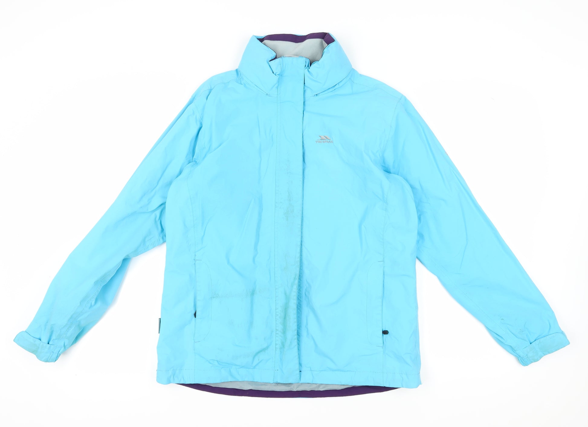 Step into any weather with confidence wearing this Trespass waterproof jacket. Designed with the active woman in mind, this sky-blue raincoat combines practicality and style effortlessly. It features a sturdy zip closure and long sleeves, ensuring maximum coverage during unpredictable autumn and winter days. The windproof properties and taped seams make it a reliable choice for your outdoor adventures, keeping you dry and comfortable. Crafted from durable polyamide and lined with soft polyester, it promises not only to block out the elements but also to provide a cosy feel. Ideal for casual outings or hikes, its mid-length design offers additional protection without sacrificing freedom of movement. Though used with visible marks, this jacket still retains functionality and style. Pair with your favourite outdoor gear and keep the elements at bay with this versatile piece.