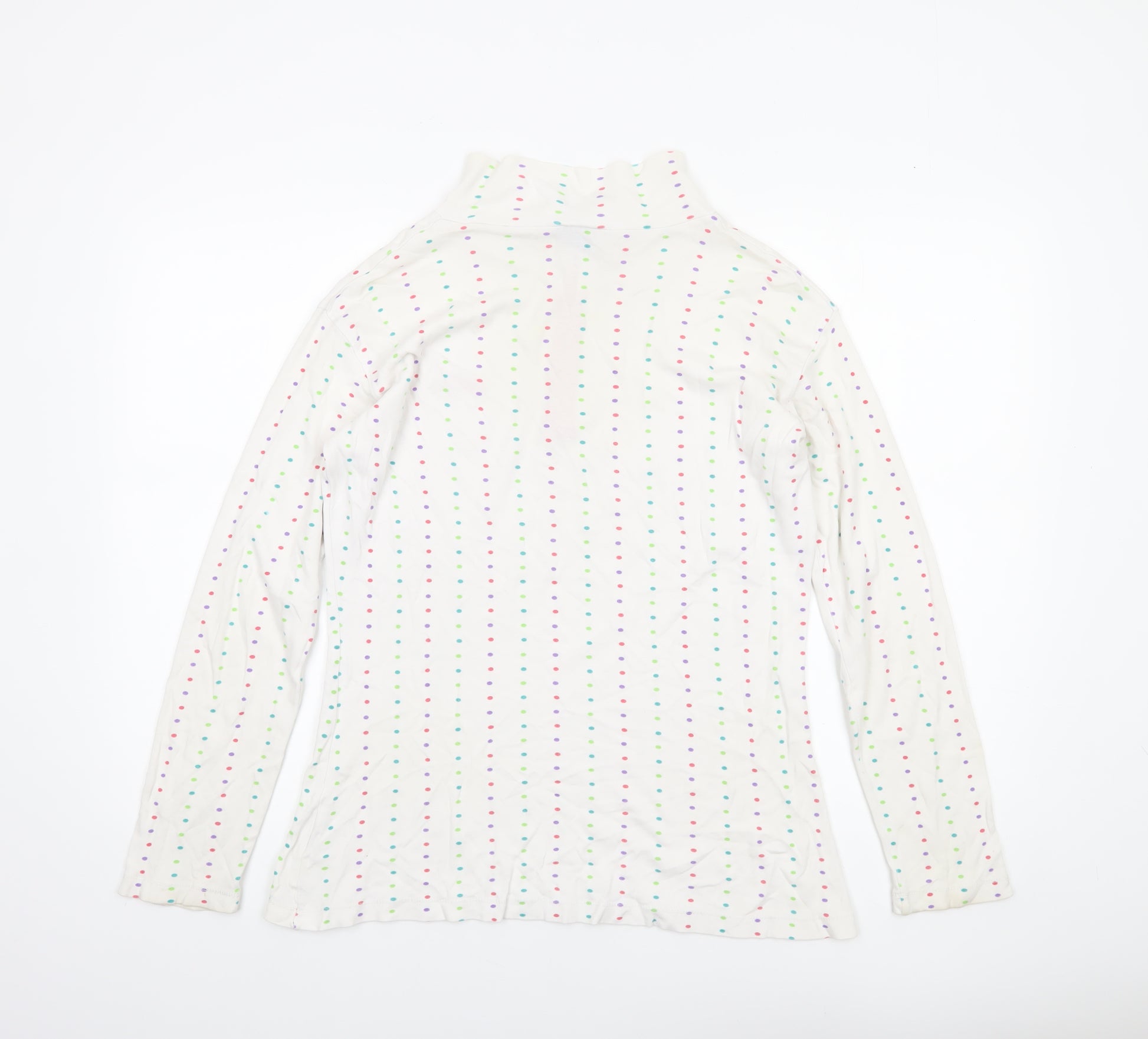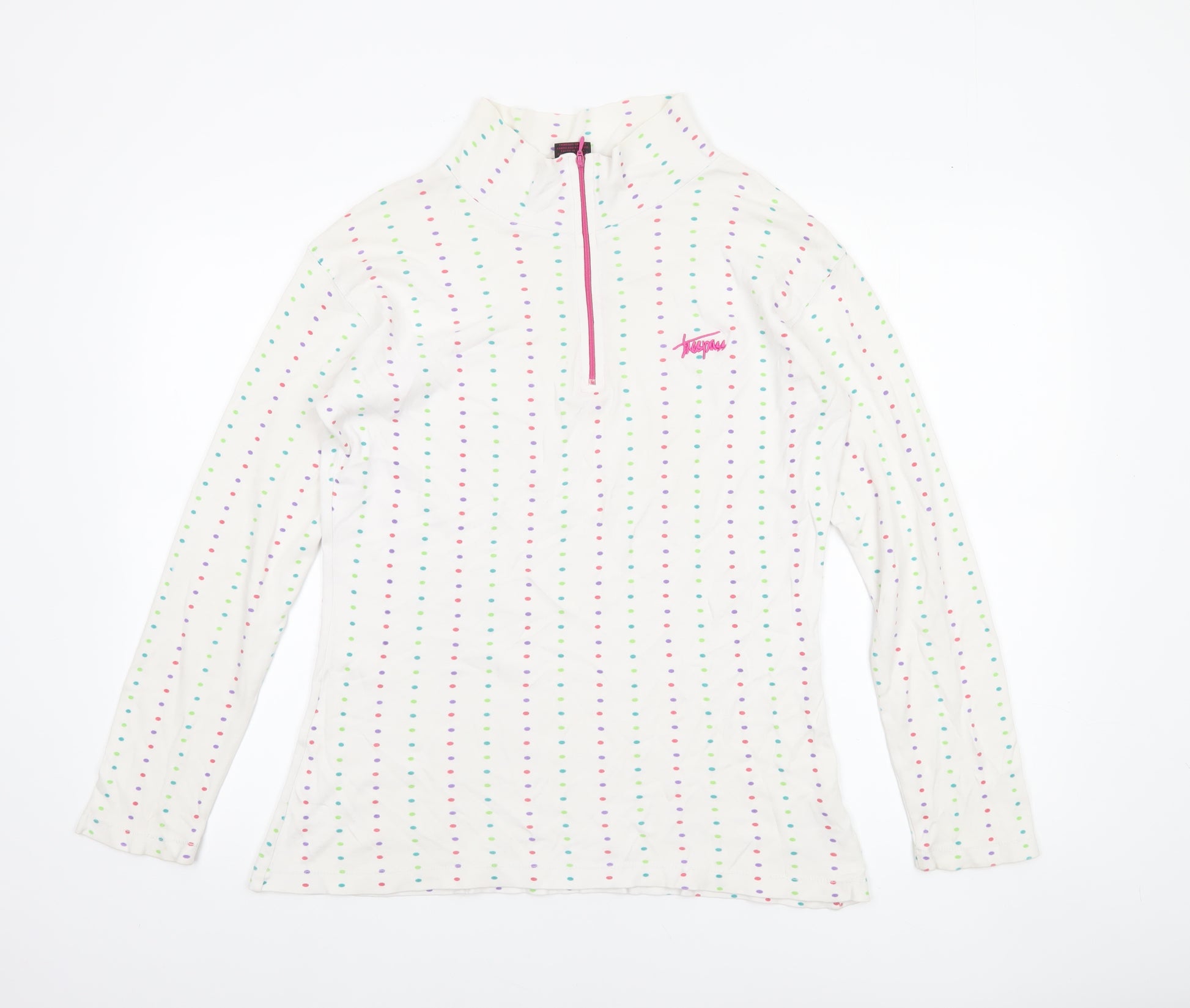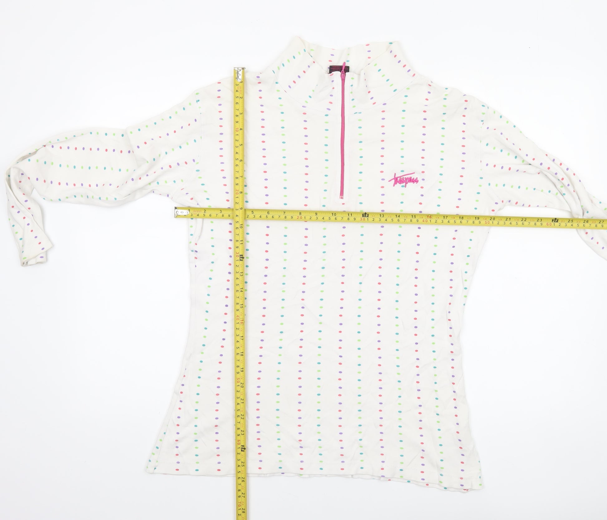 Womens White Polka Dot Long Sleeve 1/4 Zip Top Size L