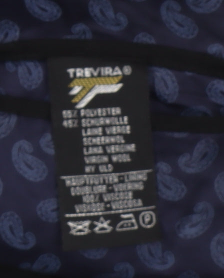 Elevate your formal wardrobe with this elegant men’s black double-breasted tuxedo jacket, tailored in a classic fit for timeless appeal. Crafted from a high-quality wool and polyester blend, this jacket offers the ideal balance of structure, comfort and durability. The luxurious fabric ensures a refined drape and sophisticated look, making it perfect for weddings, black-tie events, or elegant evening occasions. The distinctive double-breasted front with covered buttons enhances its formal charm, while the peak lapel design accentuates a confident and polished silhouette. Styled with a long-length cut, this piece delivers a flattering fit across the chest and shoulders, making it both comfortable and stylish for extended wear. The rich black colour harmonises perfectly with the smooth rayon lining finished with a subtle paisley pattern for a refined touch of character. Inside pockets add practical convenience, providing subtle storage for essentials without compromising the sleek line of the jacket. Designed for the modern gentleman who values understated sophistication, this piece works perfectly with a crisp white shirt, bow tie, and formal trousers for a complete look. Whether you are attending a gala, dinner or ceremony, this tuxedo jacket ensures you make an impeccable impression. The garment is in excellent pre-owned condition with no visible signs of wear, reflecting careful use and meticulous storage. A staple for every discerning man’s wardrobe, the jacket showcases both classic tailoring and enduring quality. Ideal for the cooler seasons of autumn and winter, its wool-rich composition provides warmth while maintaining breathability for comfort throughout your event. Add a touch of enduring refinement to your collection with this timeless piece, rich in detail and understated elegance. A sophisticated choice for any formal gathering, it combines craftsmanship with assured style.