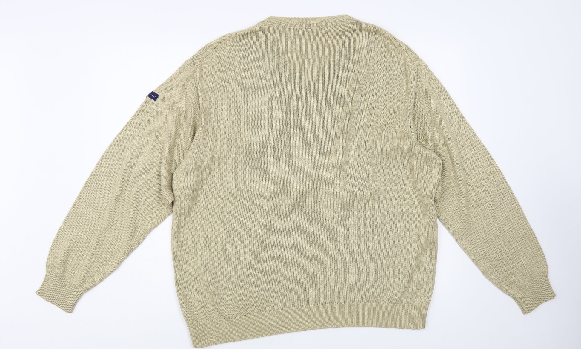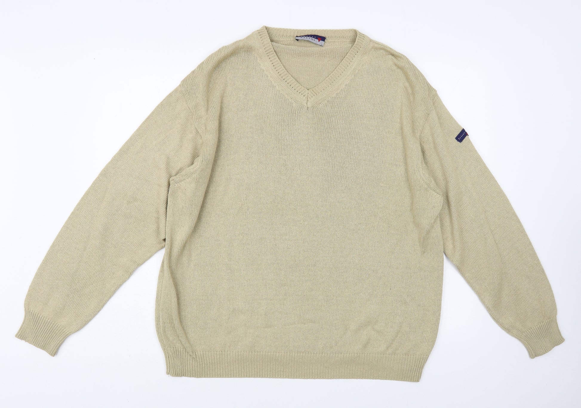 Mens Beige V-Neck Viscose Pullover Jumper Size L