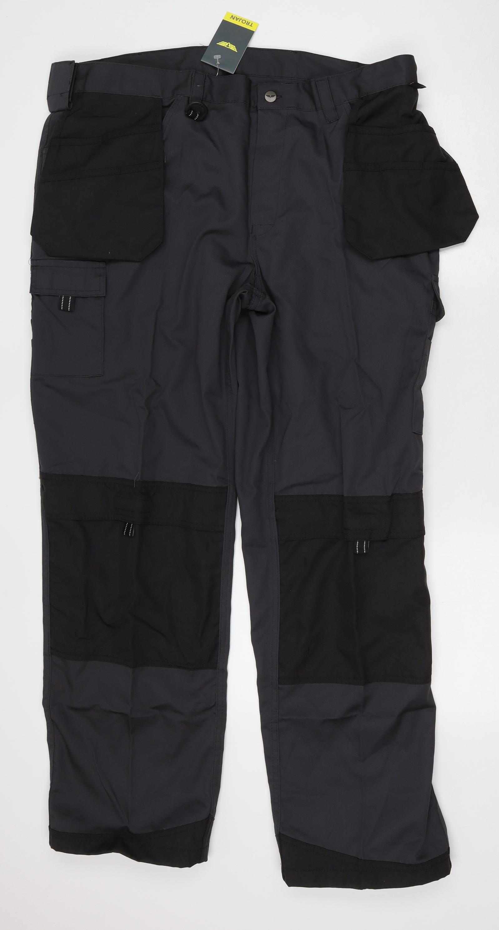 Mens Grey Polyester Cargo Trousers Size 42 L34 in Regular Button - Work Wear