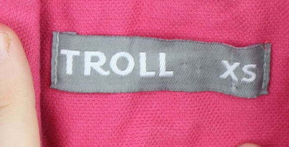 This chic and stylish pink blazer by TROLL is perfect for any woman looking to make a statement. In size XS, it offers a flattering fit suitable for regular sizing. Crafted mainly from 65% polyester and 35% viscose, the blazer ensures a comfortable and durable wear, keeping you looking sharp all day. Although pre-owned, it remains in excellent condition with just slight creasing visible, adding a touch of character. This single-breasted blazer features a notch lapel and a double-button front, with long sleeves tailored in a two-button style, lending a touch of classic sophistication to your wardrobe. If you're looking for a versatile piece to transition easily from workwear to casual outings, this blazer is an ideal choice. It’s reasonably priced at £19.50, offering great value without compromising on style. Pair this elegant pink blazer with trousers or a skirt to complete your look, and enjoy the confidence it brings.