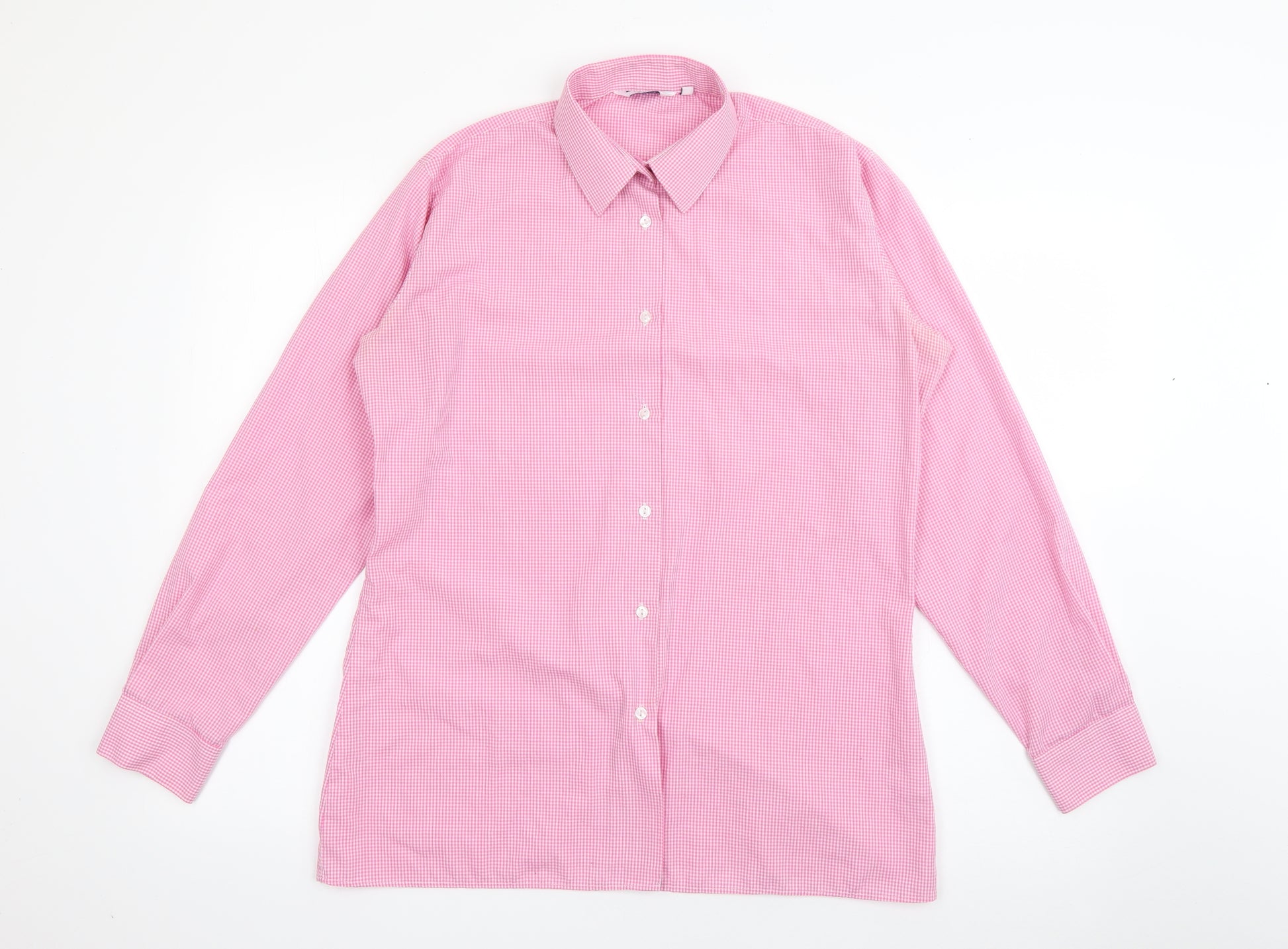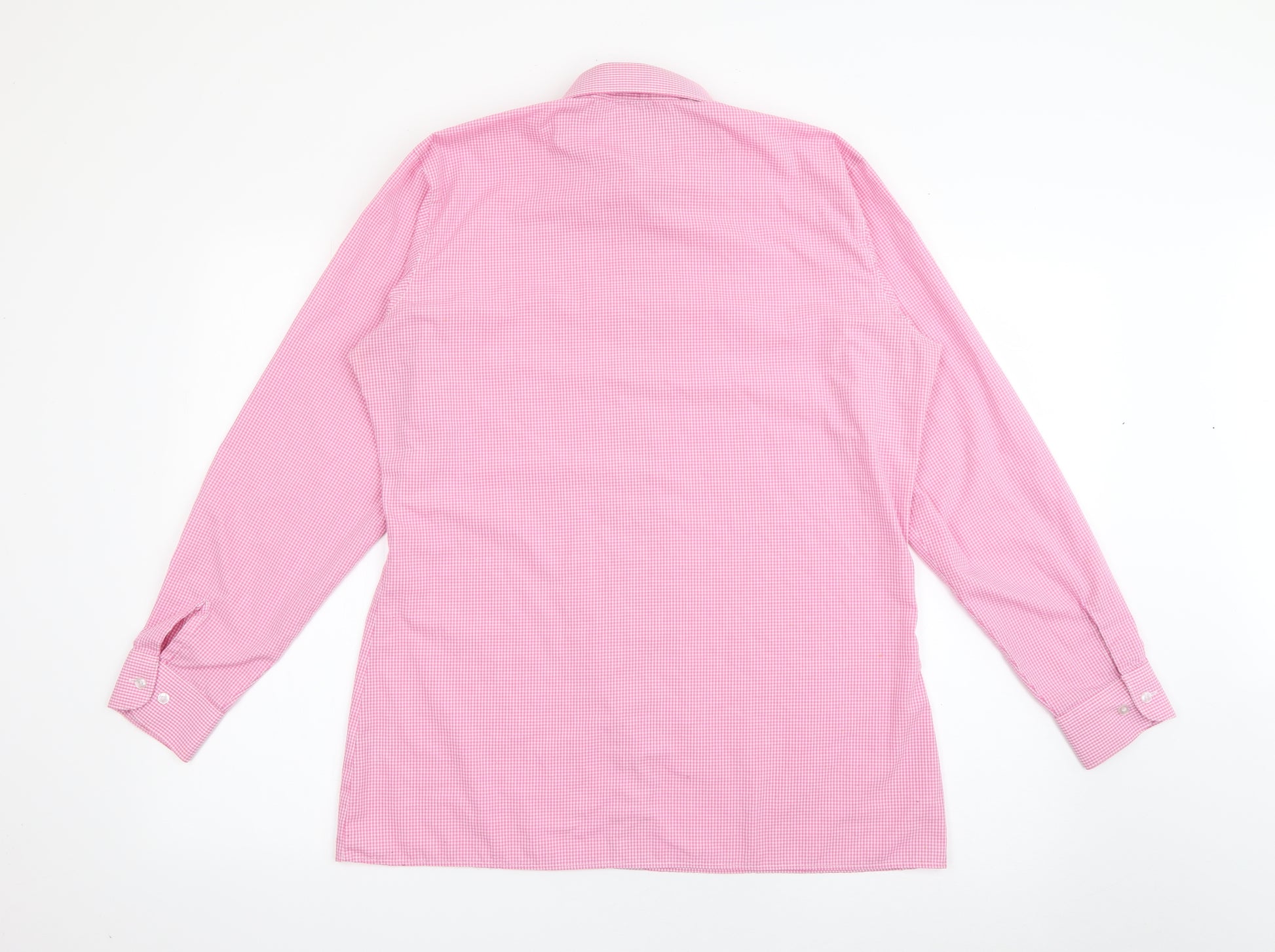 Mens Pink Check Polyester Dress Shirt Size 38 Collared Button