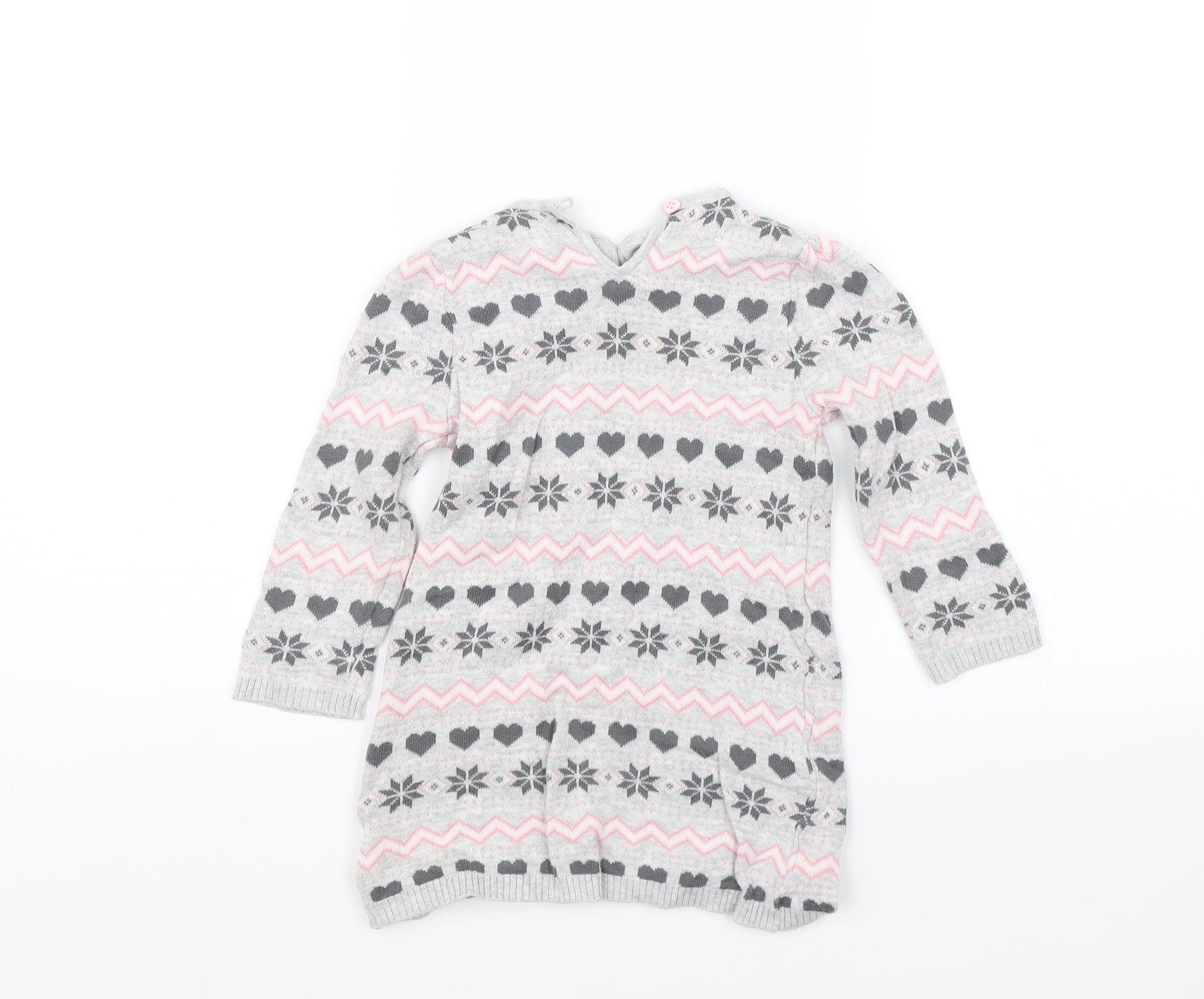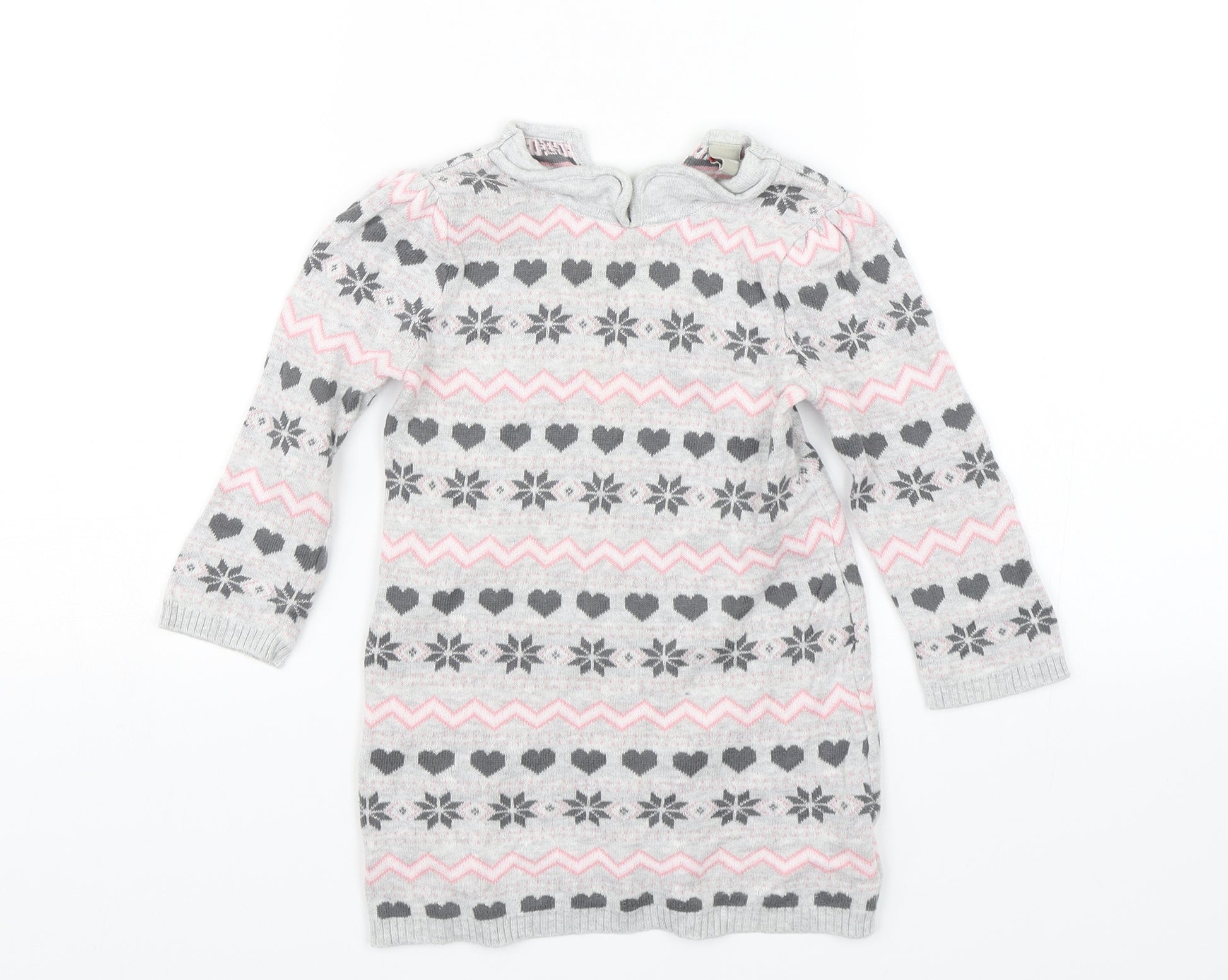 Baby Grey Fair Isle Jumper Dress Size 9-12 Months