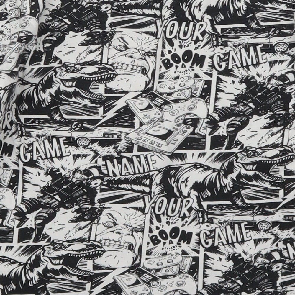 Boys Black Basic T-Shirt Size 7 Years - Black and White Comic Graphic