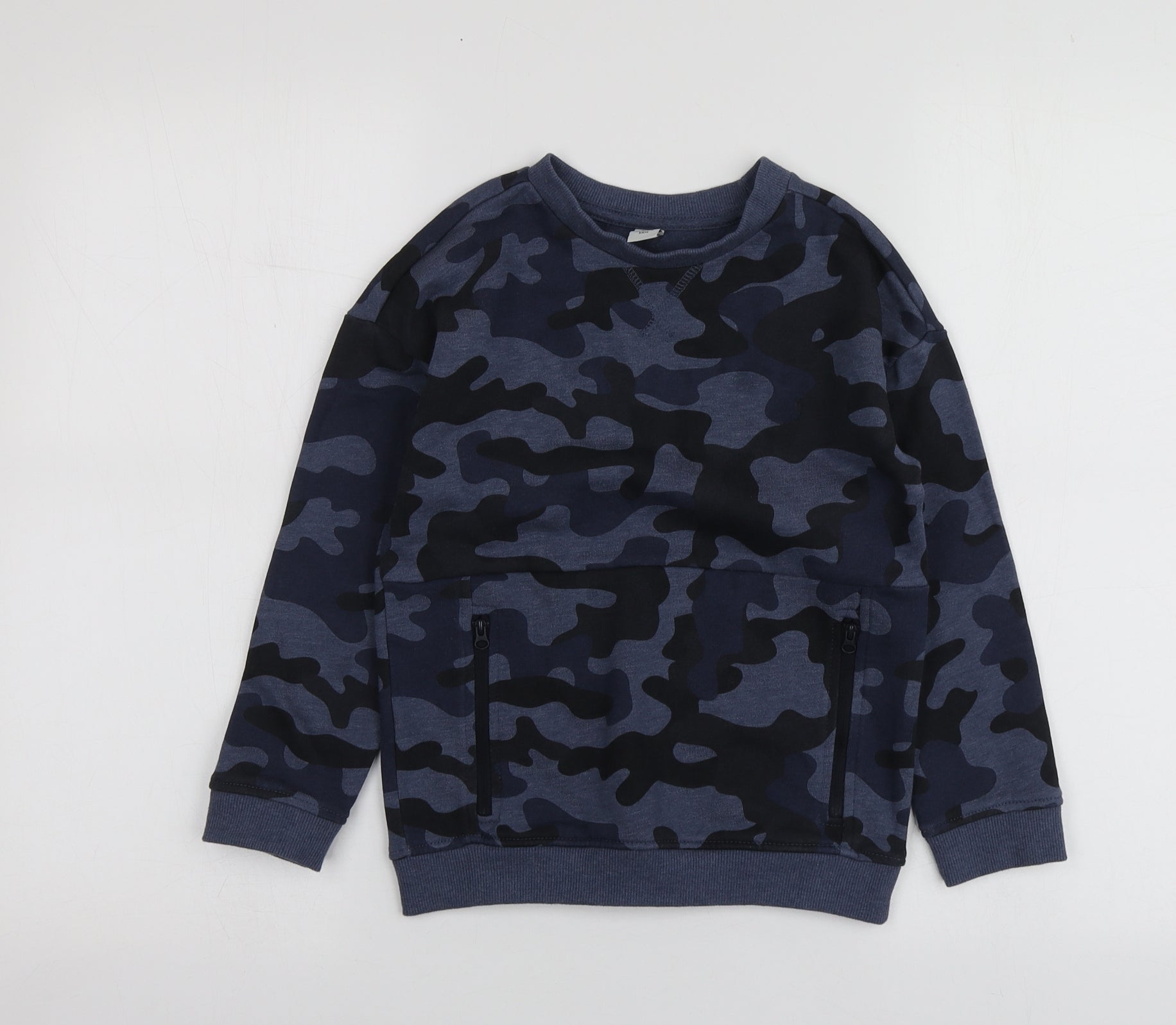 Boys Blue Camouflage Cotton Pullover Sweatshirt Size 8 Years