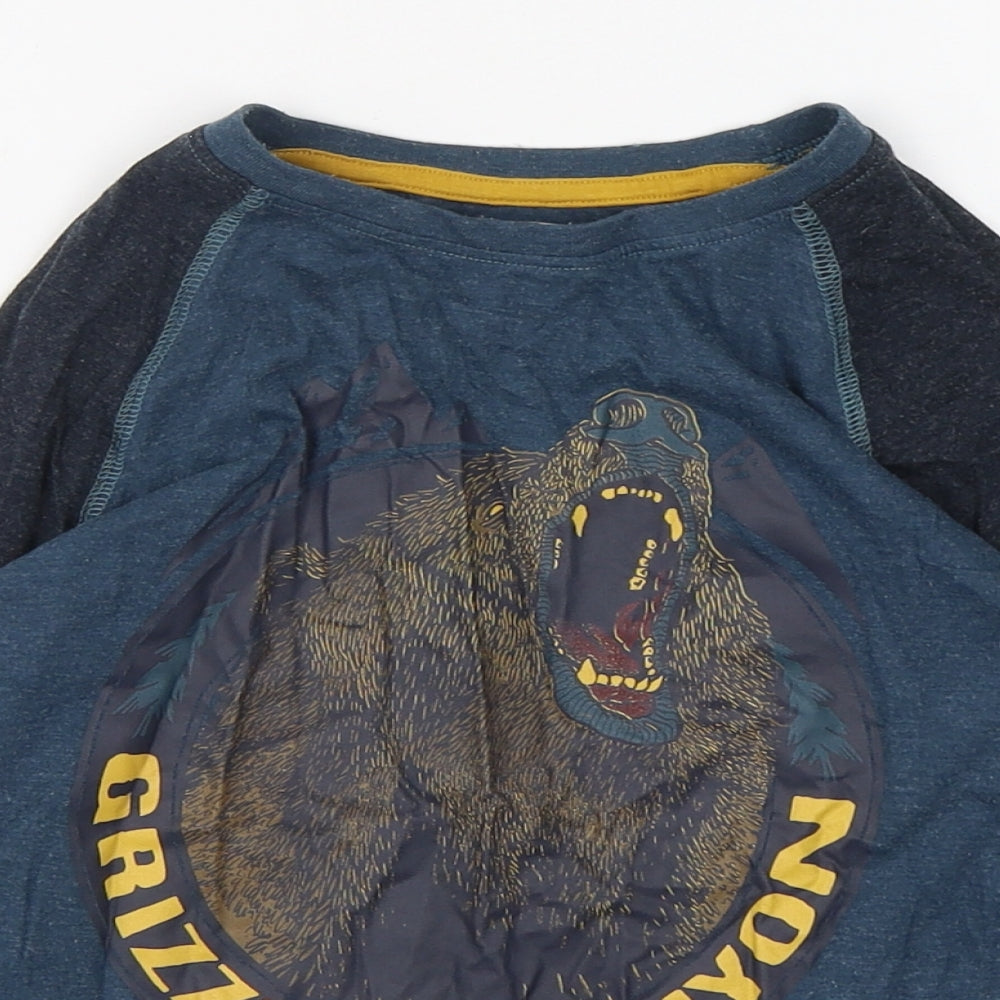 Boys Blue Cotton Basic T-Shirt Size 6 Years Round Neck Pullover - bear print