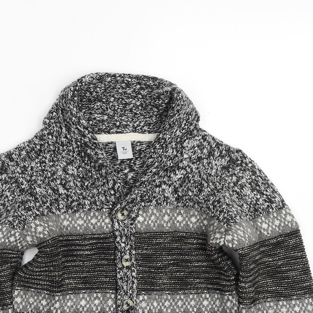 Boys Grey Collared Acrylic Cardigan Jumper Size 5-6 Years Button