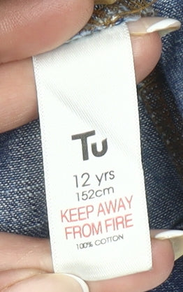 Tu Girls Blue Denim Cotton Shift Dress 12 Years Knee Length Casual