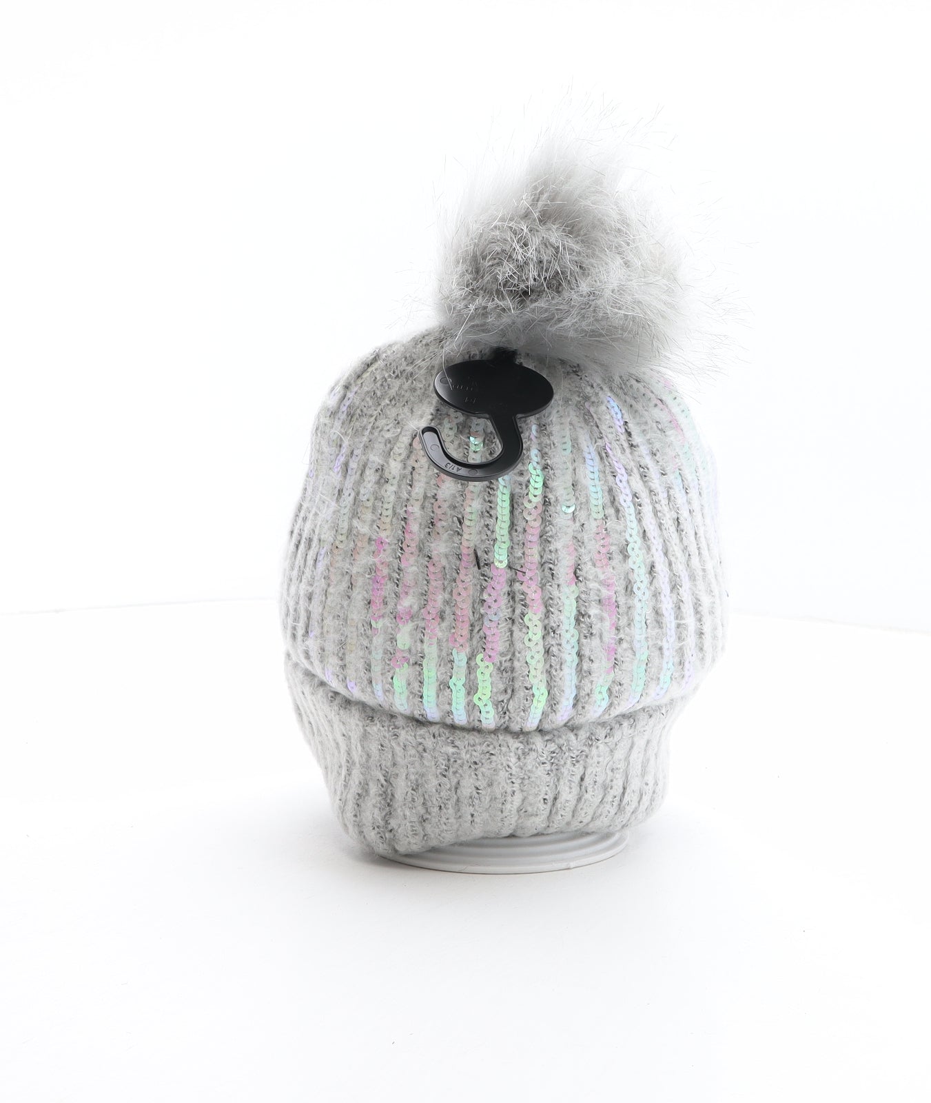 Girls Grey Acrylic Bobble Hat One Size - Iredescent