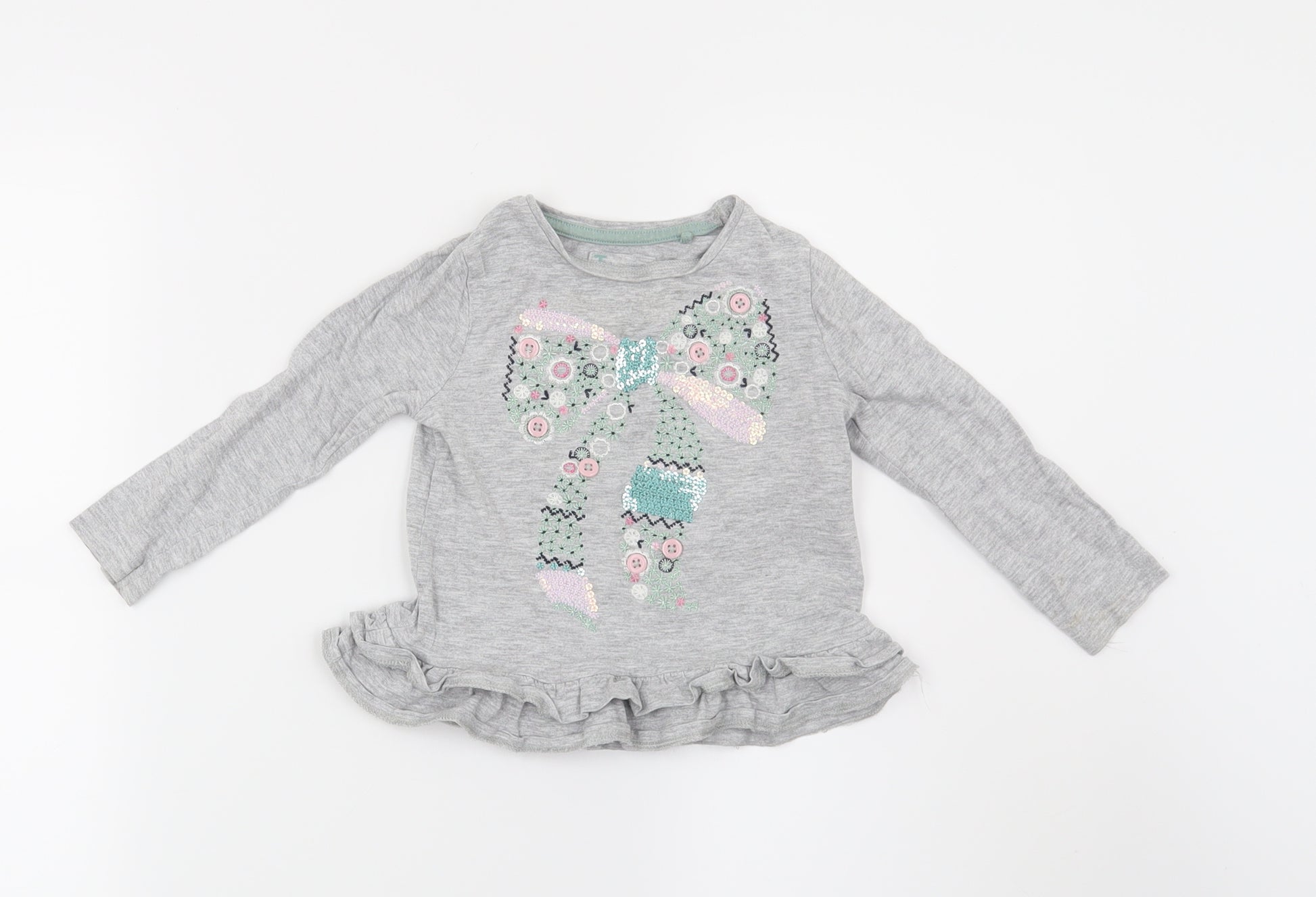 Girls Grey Basic T-Shirt Size 12-18 Months - Bow