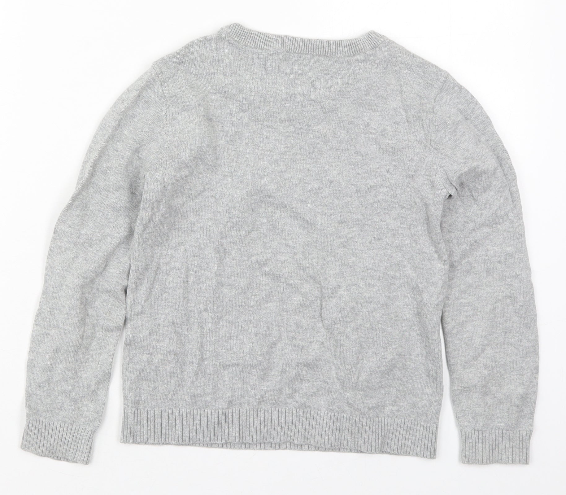 Girls Grey Crew Neck Cotton Pullover Jumper Size 7 Years Pullover - Unicorn