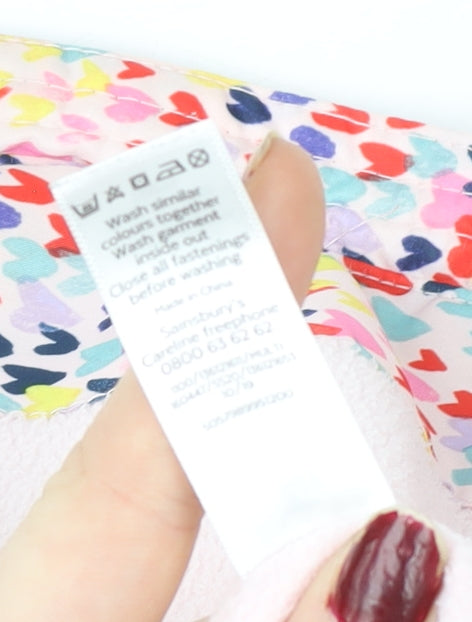 Brighten up chilly days with this adorable Tu Kids girls’ multicoloured heart print hooded puffer gilet. Designed to keep your little one warm and smiling, the cheerful heart print brings colour to autumn and winter adventures. Crafted from durable polyester with soft inner fleece lining, it’s fully padded for insulation while remaining lightweight and easy to wear over jumpers or long-sleeved tops. The cosy hood gives extra warmth on breezy days and the full front zip ensures quick dressing for active toddlers. Perfect for playtime, trips to the park or nursery days, this gilet allows easy movement thanks to its sleeveless cut while keeping the core snug. The short length provides a modern, comfortable fit that layers seamlessly with other everyday outfits. Finished with neat zip-front detailing and concealed side pockets, it’s as practical as it is stylish. Machine washable for easy care, this Tu gilet offers long-lasting wear and comfort season after season. Ideal for parents seeking both functionality and cheerful design, it’s a must-have outerwear piece for little girls who love bright, playful fashion. With its quality materials from Sainsbury’s Tu range, this item ensures reliable craftsmanship and comfort at an affordable price. A lovely wardrobe essential that combines warmth, style and practicality perfectly.