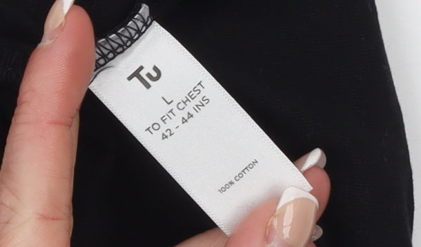 Tu Men’s Black Christmas Art Graphic T-Shirt Size L 100% Cotton