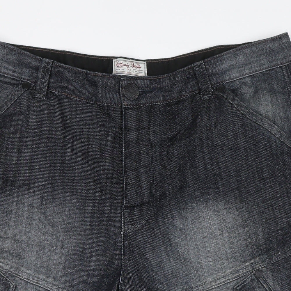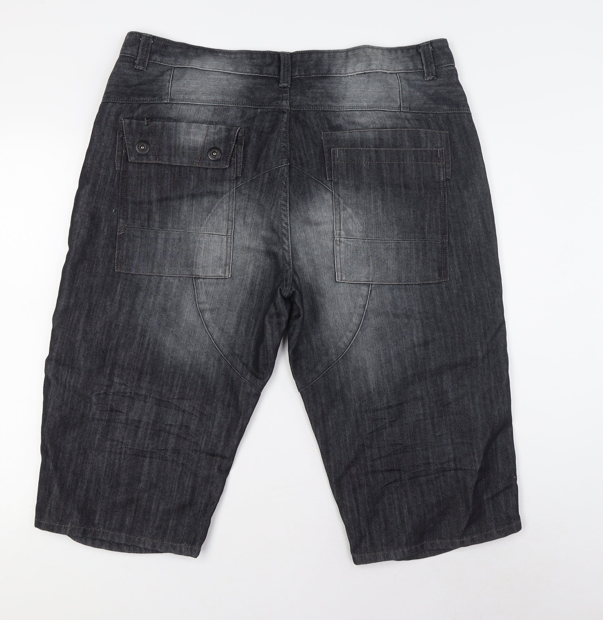 Mens Black Cotton Bermuda Shorts Size 38 in Regular Button