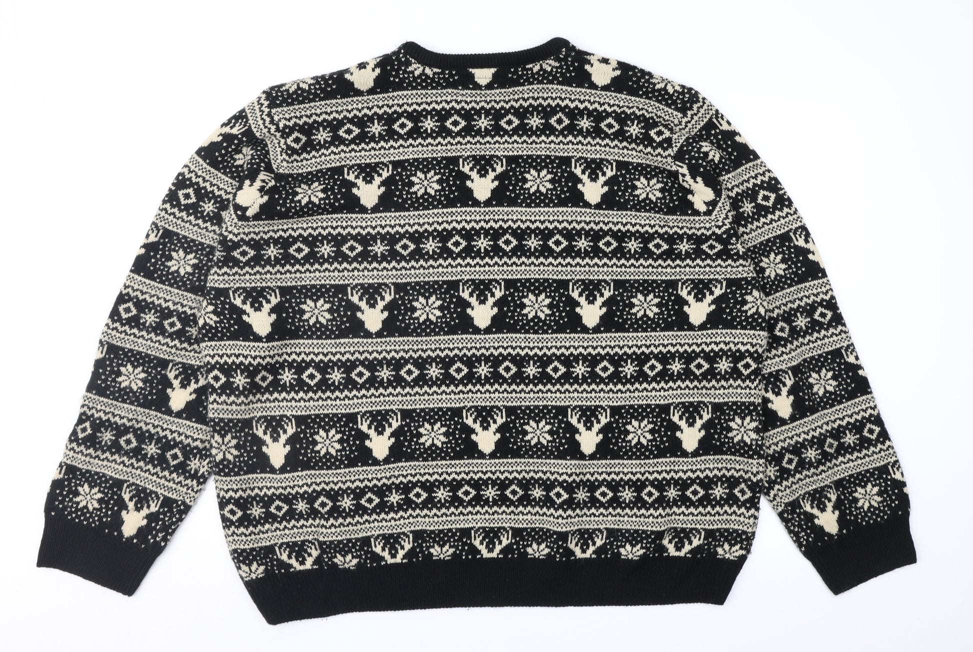 Mens Black Fair Isle Pullover Jumper Size 2XL - Xmas