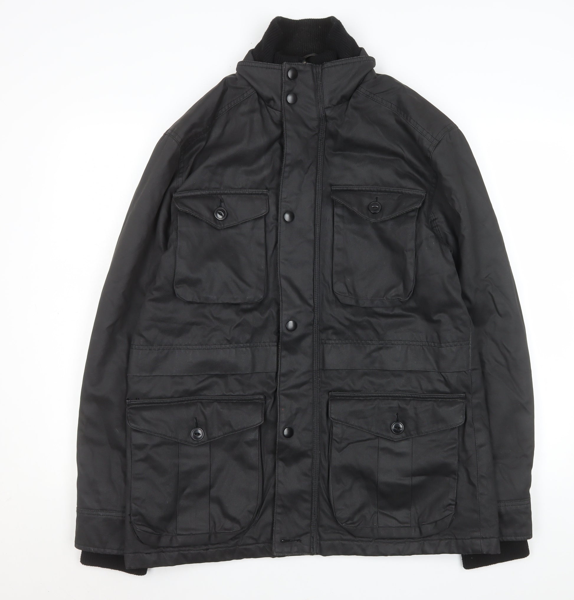 Tu Mens Black Waxed Cotton Mid-Length Jacket Size M Outdoor Coat