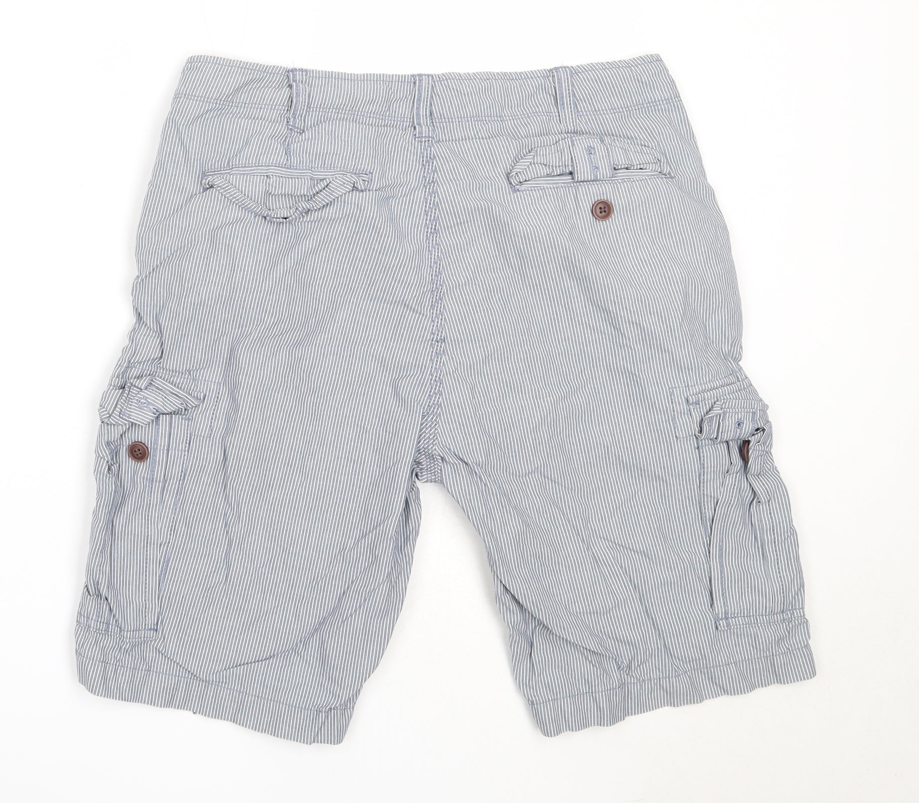 Mens Blue Striped Cotton Bermuda Shorts Size 32 in Regular