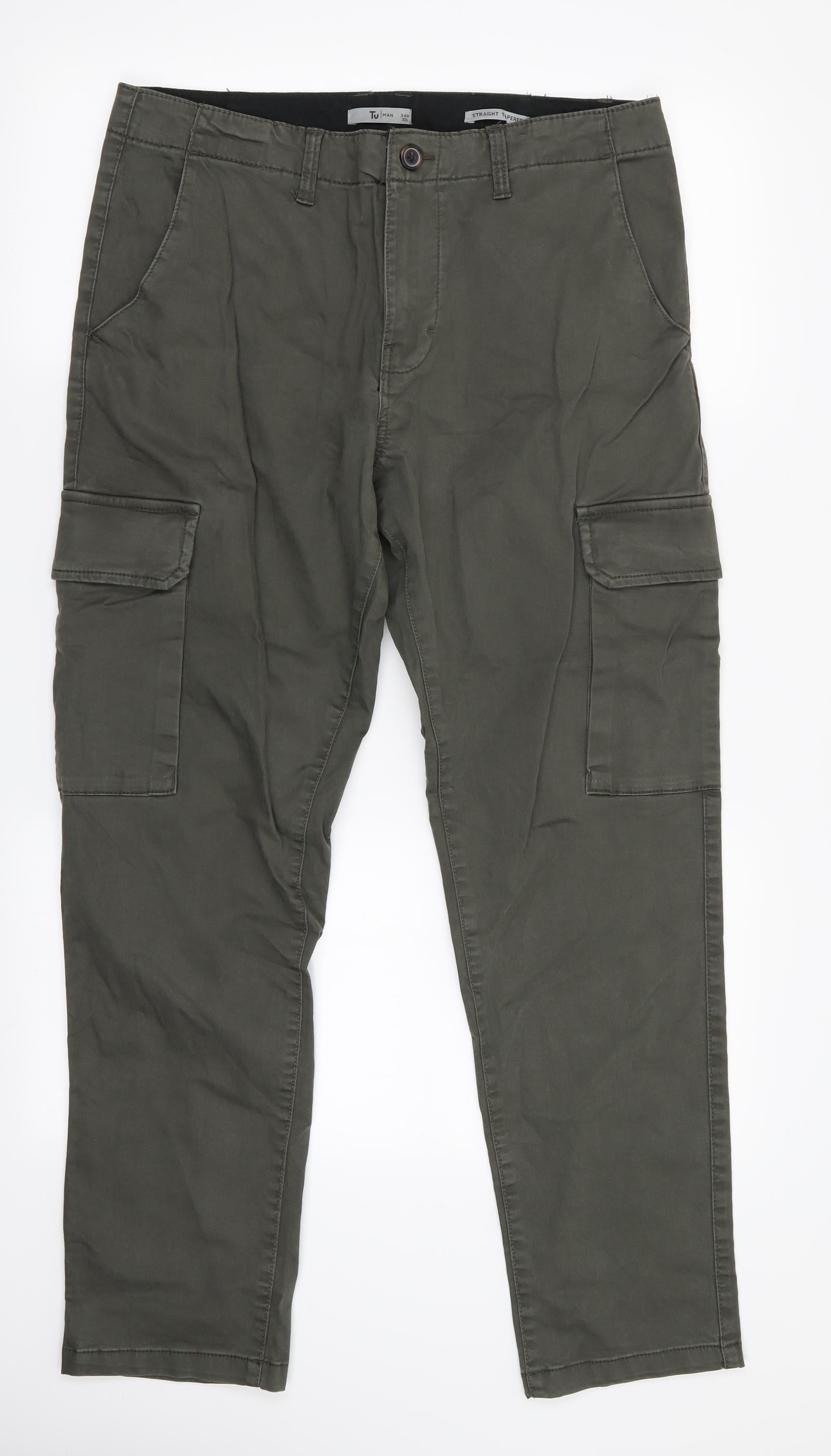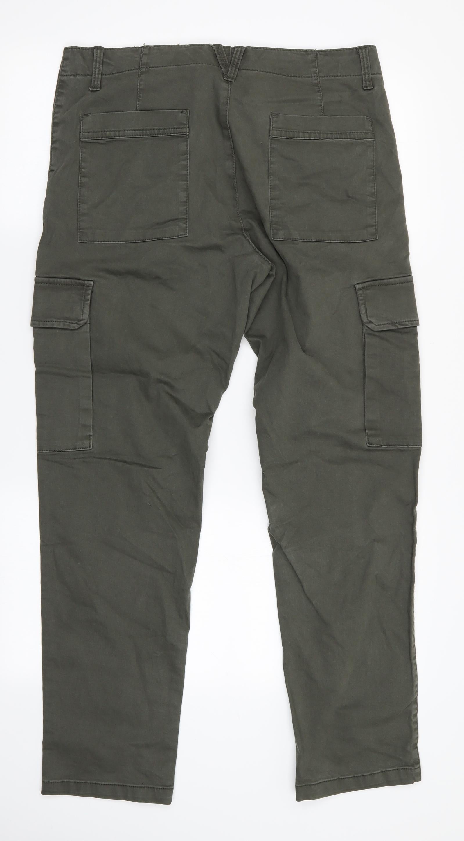Mens Green Cargo Trousers Size 34 in L30 in - Straight Tapered Leg