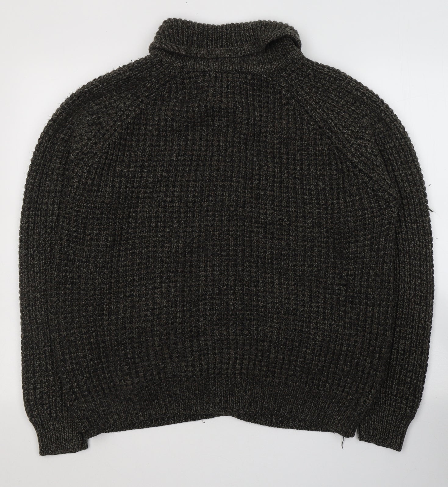 Mens Green High Neck Acrylic Cardigan Jumper Size M