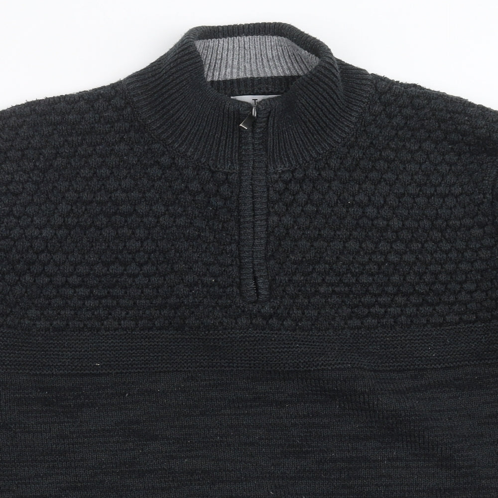 TU Men’s Grey Cable-Knit 1/4 Zip High Neck Jumper Size L