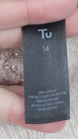 Step out in cosy, effortless style with this Tu Women’s beige star-patterned cardigan, designed for comfort and charm during cooler seasons. Crafted from a soft blend of acrylic, recycled polyester, polyester, metallised fibres, and elastane, it offers a lightweight yet snug knit that moves with you, making it perfect for layering. The cardigan features sparkling glitter star accents that add a playful twist to its classic beige tone, creating a chic and eye-catching effect that brightens any outfit. The flattering V-neckline and button-up front lend timeless appeal, pairing seamlessly with jeans, smart trousers, or skirts for an easy transition from weekend casuals to relaxed workwear. With long sleeves, ribbed cuffs and hem, and a stretchy fabric type that provides a comfortable, figure-flattering fit, it’s ideal for adding warmth without bulk. Suitable for autumn and winter wear, this regular-fit knit cardigan is highly versatile and easy to care for – fully machine washable for daily convenience. Whether you’re heading to the office, meeting friends for coffee, or simply lounging at home, it’s a relaxed yet stylish choice that combines practicality with a subtle touch of sparkle. The design’s soft beige hue is a neutral favourite, complementing wardrobes across the season while the metallic star detailing ensures a fun, modern look. This women's cardigan by Tu represents a balance of quality and affordability, offering enduring comfort for any casual occasion. In excellent pre-loved condition with minimal signs of wear, it retains its lovely texture and shape, ready to be enjoyed once more. Add this cosy knit to your wardrobe for a touch of everyday sparkle that’s both warm and fashionable. Ideal for women seeking a stylish jumper alternative with a personality that shines.