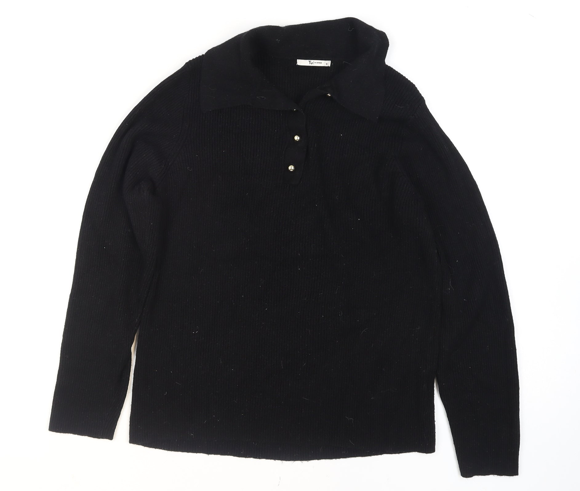 Tu Women Black Collared Henley Knit Jumper Size 16