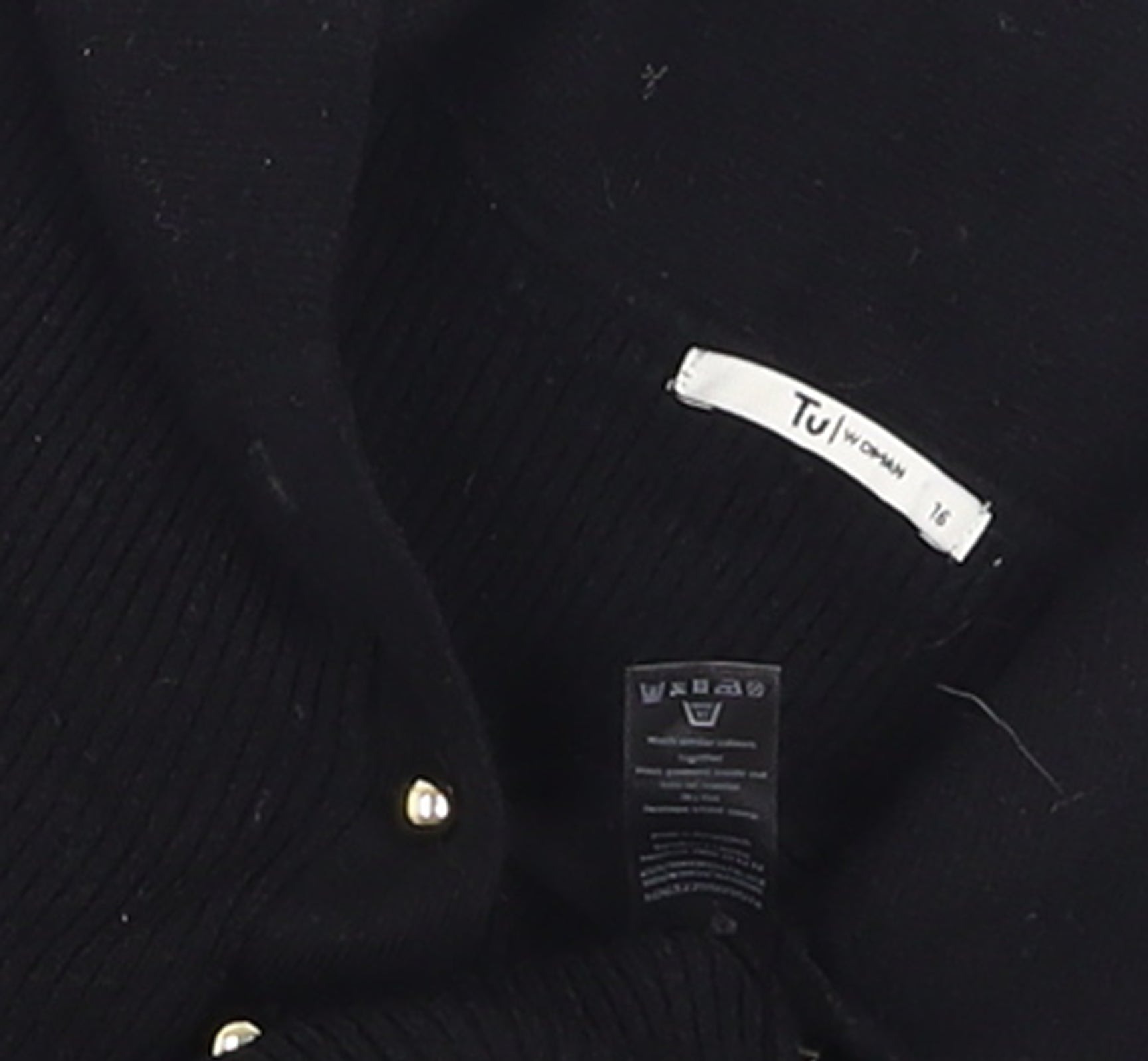 Elevate your cool-weather wardrobe with this stylish black Henley jumper from Tu Woman. Designed for both comfort and sophistication, this timeless piece features a soft ribbed knit texture, making it ideal for layering or wearing on its own. The flattering collared neckline and partial button placket lend a polished touch, blending smart-casual appeal with easy everyday wear.Crafted from a quality cotton and polyester blend, this jumper feels comfortable against the skin while offering a practical, durable finish that retains its shape after washing. The long sleeves and medium-weight knit provide warmth without bulk, making it perfect for transitional months like autumn through winter. Its classic black hue makes it incredibly versatile—pair with tailored trousers for a work-ready look or with jeans and boots for off-duty days.The jumper’s tailored yet regular fit flatters the figure while ensuring ease of movement. Ribbed detailing adds subtle texture and dimension to the design, enhancing its refined minimalist aesthetic. Lightweight and breathable, it’s suitable for all seasons and a smart staple piece for any wardrobe. Style it with layered necklaces over the open collar for a chic finish or beneath a blazer for effortless sophistication.Ideal for casual days, office wear, or evening outings, the Tu Woman Black Collared Henley Jumper is a must-have essential that combines practicality and timeless design. This gently used piece remains in very good condition with only some minor lint visible, ensuring great value and continued wearability. Update your collection with this confident blend of comfort and classic style—a piece you’ll reach for again and again.