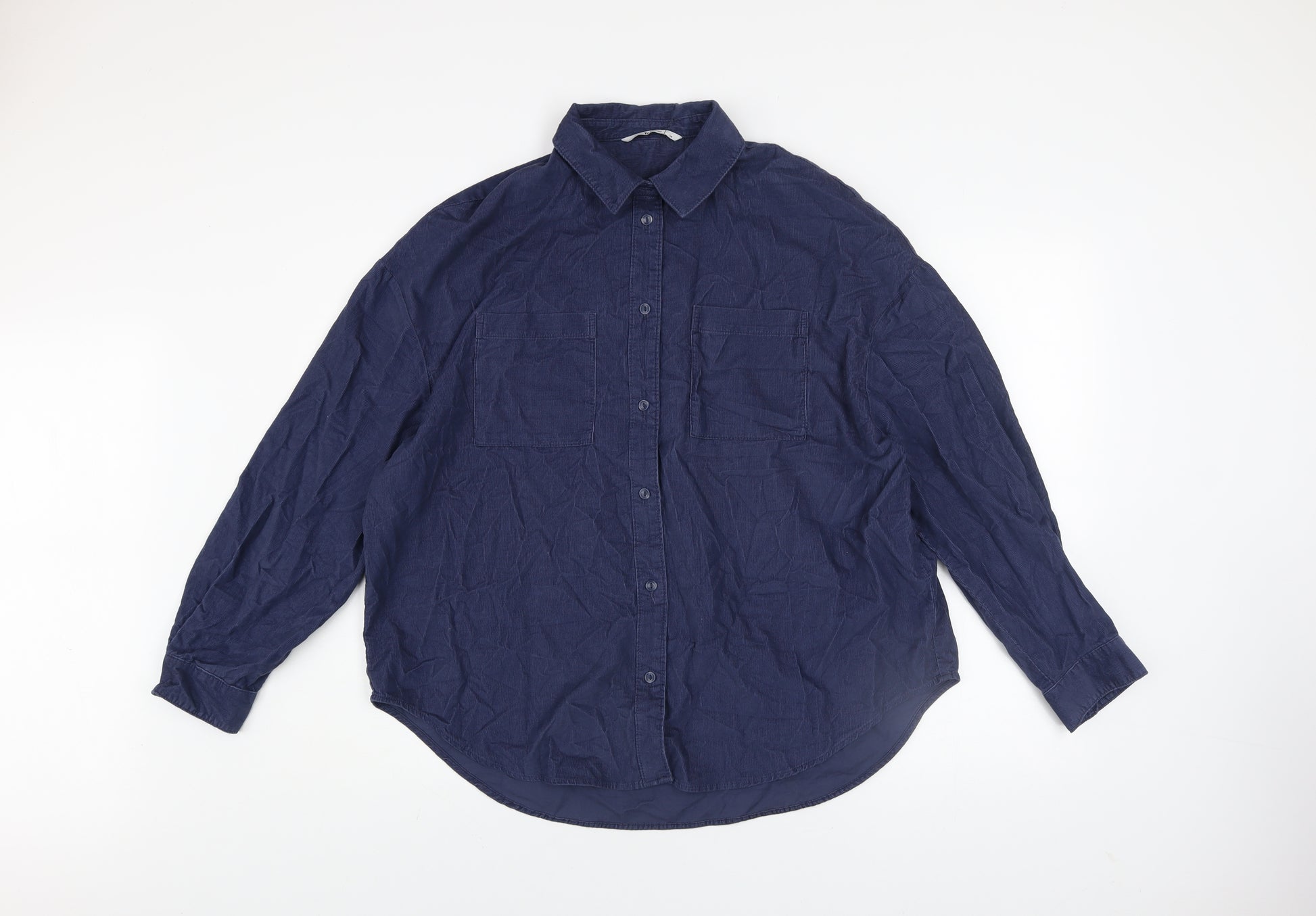 Tu Women Blue Cotton Long Sleeve Button-Up Shirt Size 14