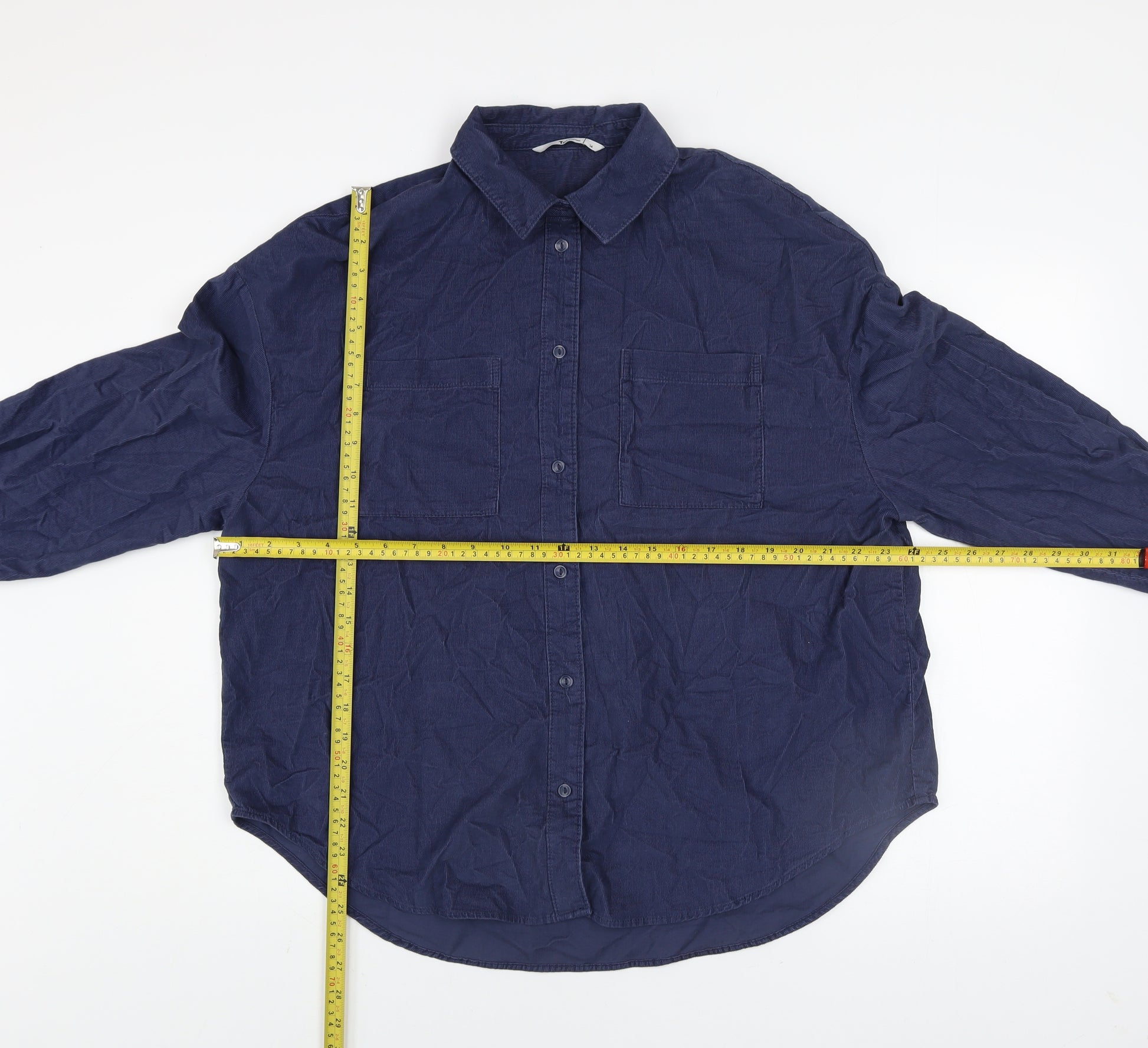 Elevate your everyday wardrobe with this versatile women’s blue button-up shirt from Tu. Designed in a flattering size 14 regular fit, this timeless piece combines comfort and classic style for effortless everyday wear. Crafted from 100% cotton, the soft woven fabric offers a breathable and lightweight feel, making it ideal for transitional seasons such as spring and autumn. The collared neckline and full button front create a polished yet relaxed aesthetic, while the long sleeves with buttoned cuffs allow for rolled or refined styling depending on your look. The solid blue colour ensures easy coordination with jeans, chinos, or skirts, making it a reliable wardrobe essential for both casual and workwear occasions. Two front chest pockets add a functional and subtle design detail to this simple, classic silhouette. The breathable nature of the cotton fabric ensures comfort throughout the day, whether you’re layering over a vest or wearing it solo. The shirt features a slightly curved hem, adding shape and flexibility for tucking in or wearing loose. In excellent pre-owned condition, this shirt shows only light creasing consistent with careful wear, maintaining a fresh and well-kept appearance. Ideal for casual outings, office days, or relaxed weekend styling, it provides effortless versatility to your collection. Pair it with tailored trousers for a business-casual finish, or with denim for a laid-back look. This Tu women’s long sleeve button-up shirt offers classic appeal, everyday comfort, and dependable quality, a must-have for any wardrobe seeking timeless simplicity with breathable, easy-care cotton comfort.